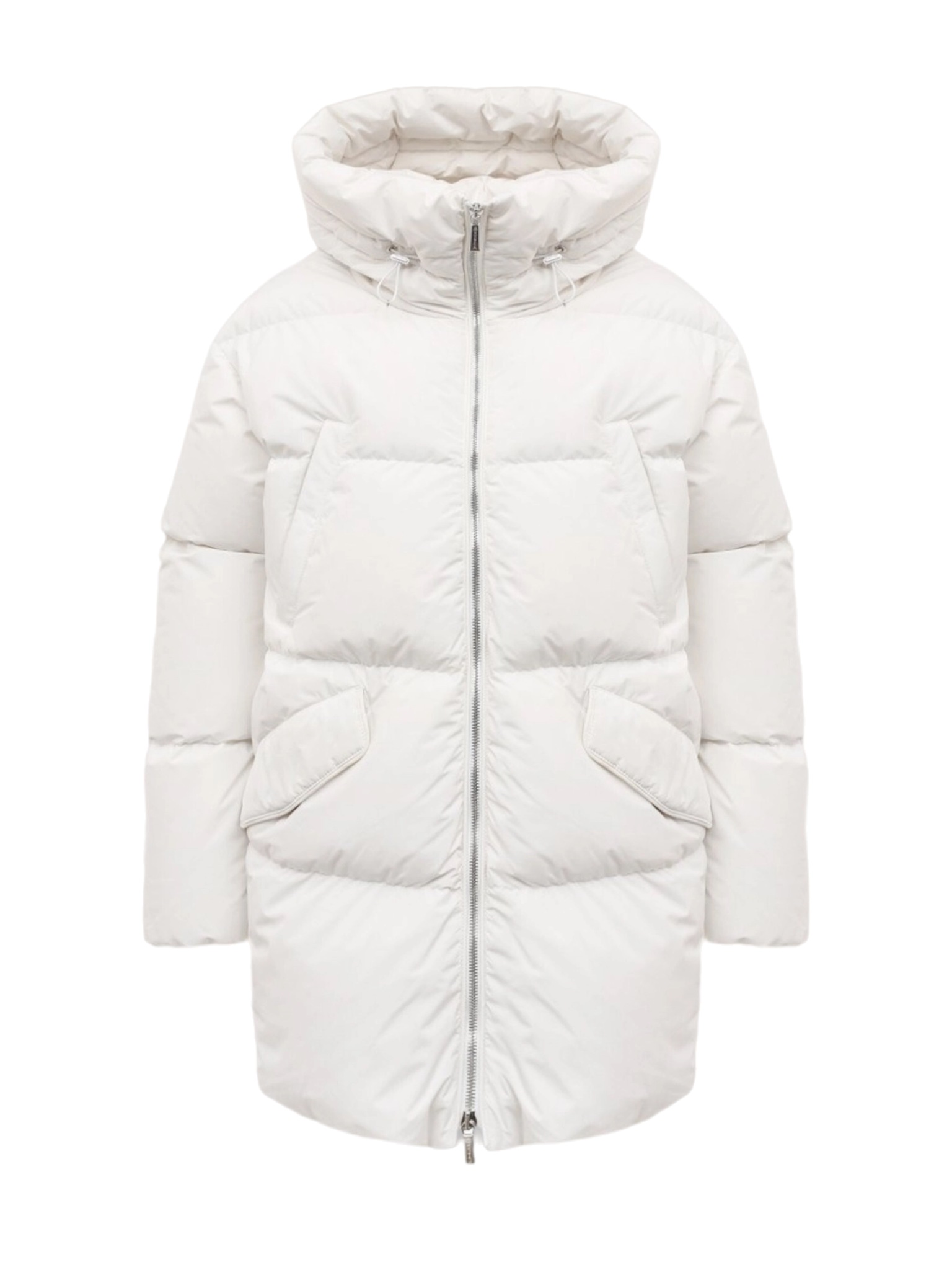 Пуховик Moorer - минимализм как искусство, этичность как основа. Этот пуховик - больше, чем одежда; это воплощение философии Moorer Blanc, где искусство служит отправной точкой. Чистый, минималистичный дизайн отвергает излишества, фокусируясь на сути форм и безупречной функциональности. Созданный в духе вневременной красоты, он не следует трендам, а задает стандарты. Высокотехнологичная ткань с водонепроницаемым гусиным пухом обеспечивает превосходную защиту и тепло. Расклешенный крой средней длины, капюшон макси и вырез водолазки создают скульптурный силуэт. Это пуховик для тех, кто ценит осознанность, вечный стиль и силу чистоты линий.