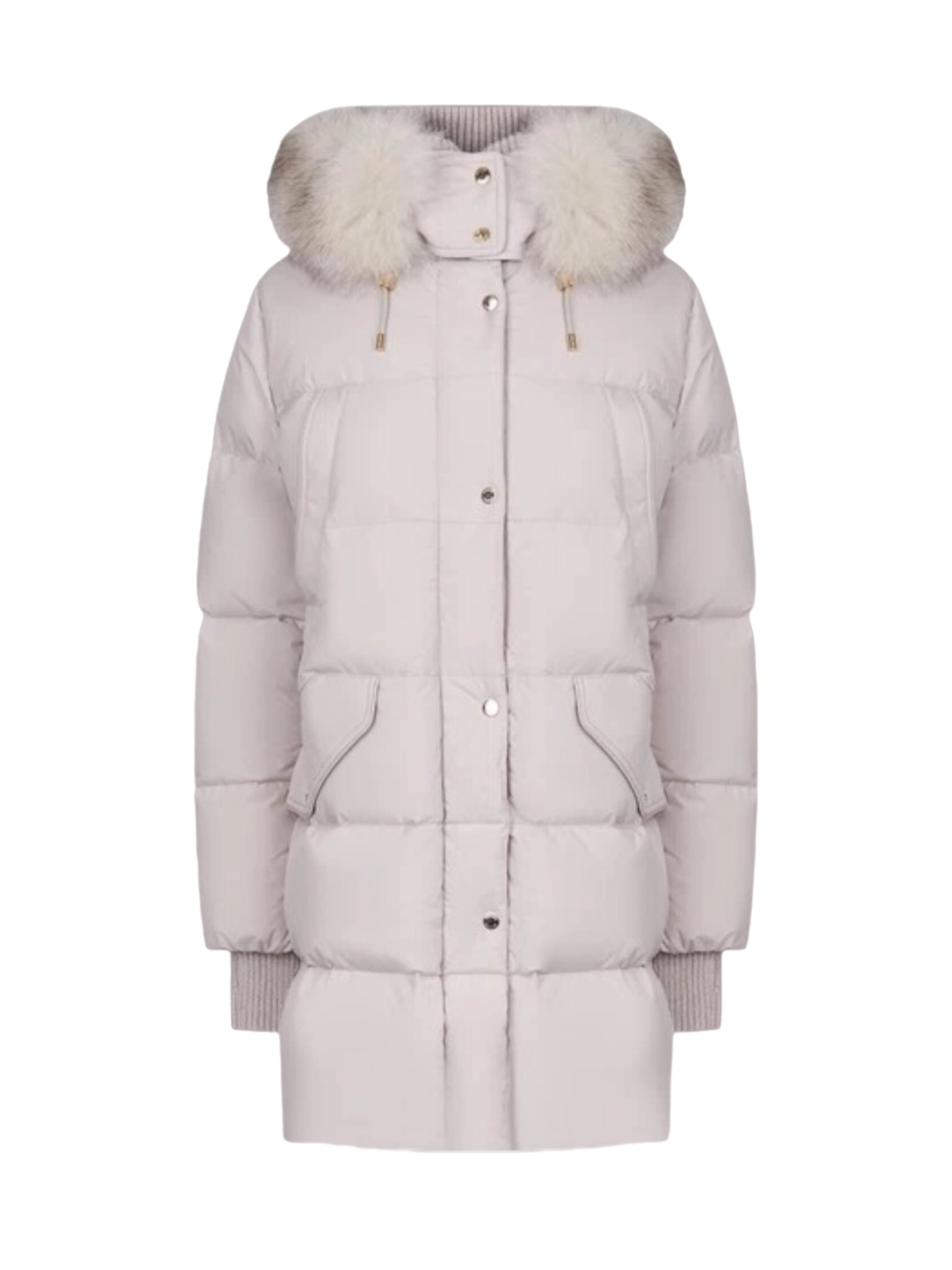 Пуховик Moorer - безупречная итальянская зима. Выполненный из высокотехнологичной ткани с водонепроницаемой мембраной, он надежно защищает от непогоды, оставаясь изумительно легким. Универсальный бежевый оттенок и утонченные линии делают его идеальным спутником для любого повода. Горизонтальная стежка добавляет графичную изысканность, а чистый гусиный пух гарантирует превосходное тепло даже в сильные морозы. Роскошную ноту вносит объемный съемный капюшон, отороченный натуральным мехом лисы – символ статуса и невероятной защиты от ветра. Это больше, чем пуховик – это уверенность и стиль, подаренные Moorer.