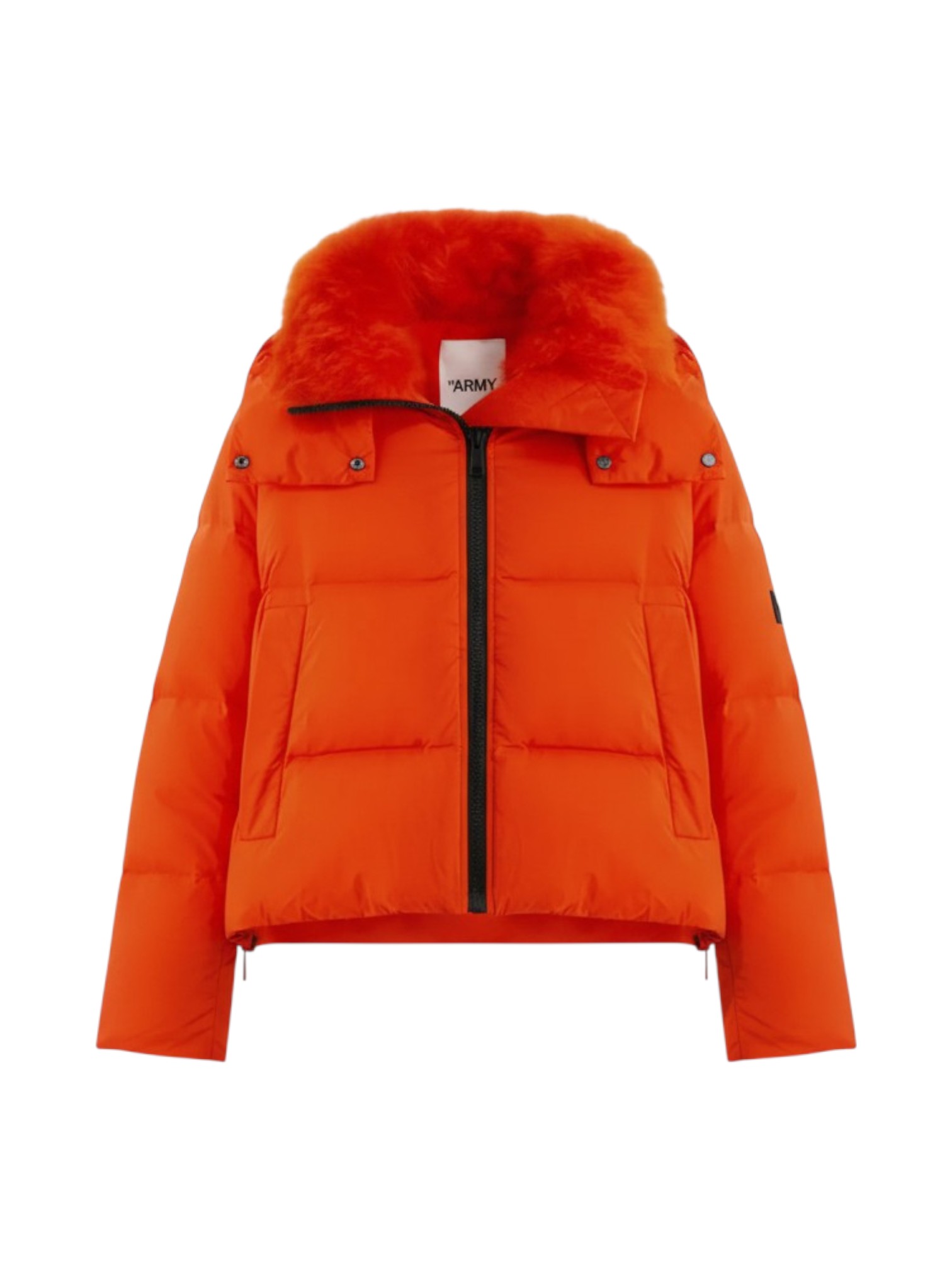 Пуховик YS ARMY -это смелый акцент в зимнем гардеробе, который точно не останется незамеченным. Большой и очень пышный меховой воротник из яркого оранжевого меха - придаёт пуховику роскошный и стильный вид, отлично защищает от ветра и холода. Два вместительных накладных кармана с клапанами. Металлические кнопки и фурнитура чёрного цвета.