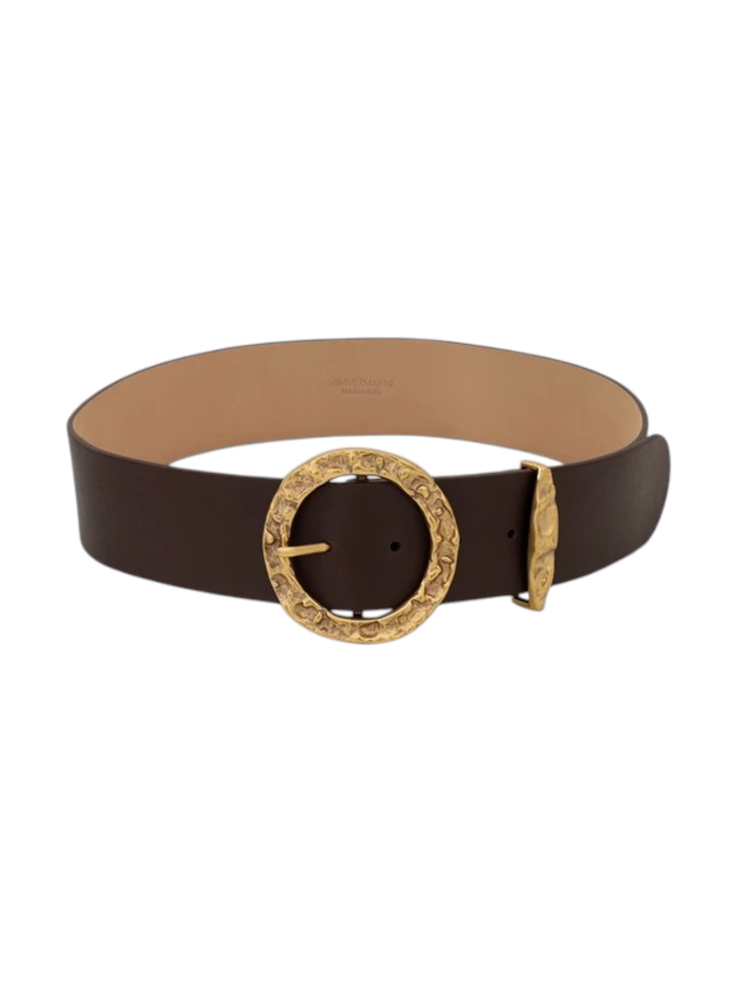 Ремень Zimmermann - воплощает любовь бренда к изысканным аксессуарам. Модель из 100% кожи с пряжкой и петлёй из золотой чеканки создана для тех, кто ценит стиль, качество и внимание к деталям. Идеально подходит для платьев, брюк, джинсов, шорт и юбок. Помогает подчеркнуть талию и завершить образ.