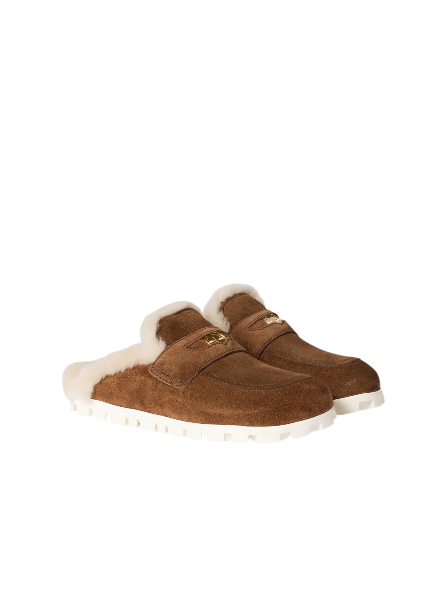 Сабо Miu Miu выполнены в лаконичном дизайне, подчеркивая вашу элегантность и чувство стиля. Верхняя часть декорирована кожаным зажимом и металлической монеткой с фирменным логотипом бренда, что придает им особый шарм. Подкладка из овчины обеспечивает комфорт даже при длительном ношении, а тисненый логотип на язычке добавляет завершающий штрих к общему образу обуви. Подошва из ЭВА гарантирует легкость и удобство, делая эту модель идеальным выбором как для повседневного использования, так и для особых случаев.
