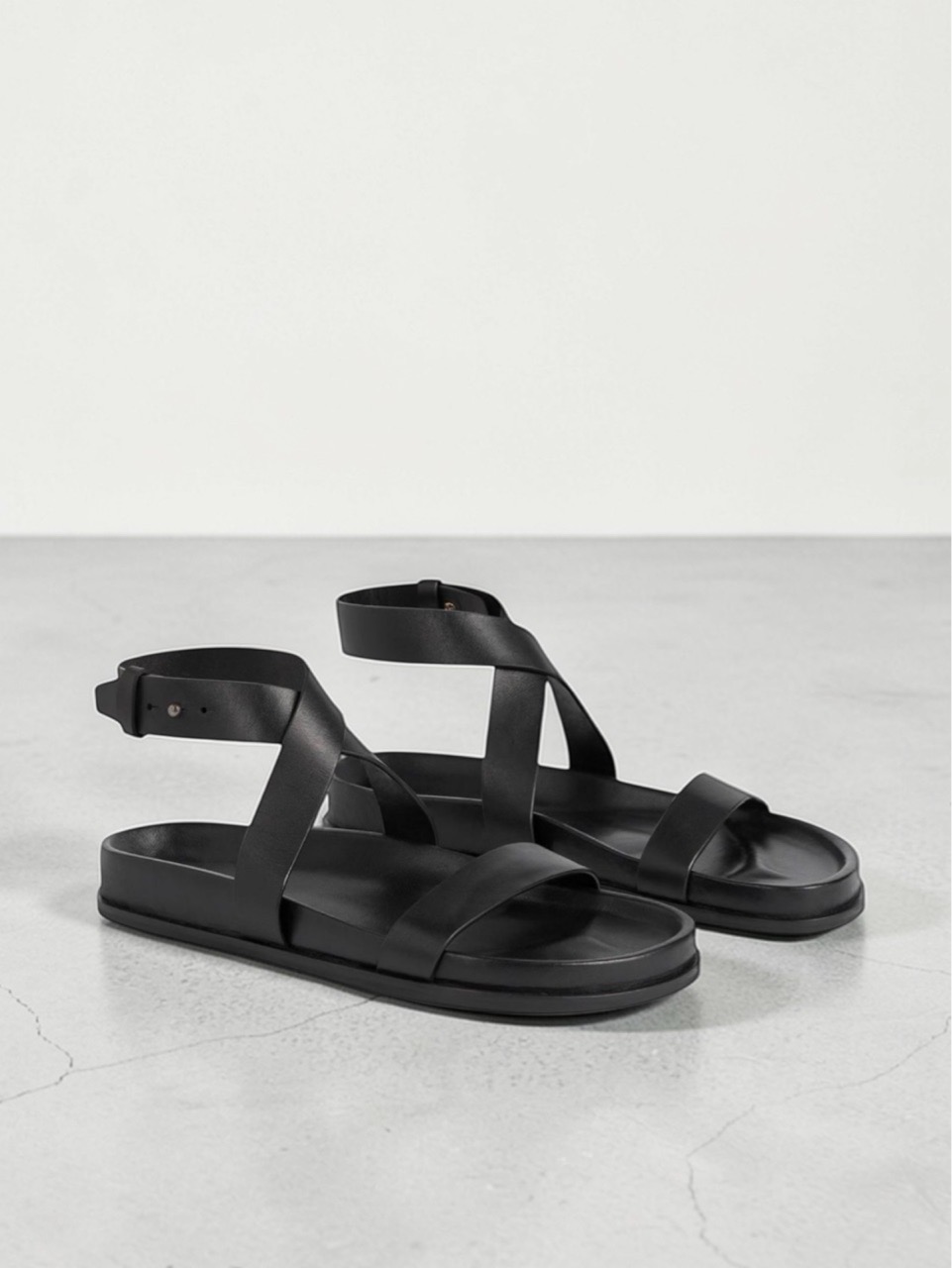 Сандалии Totême с узкой перемычкой и перекрещивающимися ремешками — это отличный выбор для прогулок, особенно в теплую погоду. Гладкая кожа придает им стильный вид, делает их более элегантными. Нескользящая подошва и анатомическая стелька обеспечивают комфорт во время долгих прогулок, что делает эти сандалии идеальными для активного отдыха. Фактурный текстиль на стельке добавляет дополнительный уровень удобства, предотвращая скольжение стопы внутри обуви.
