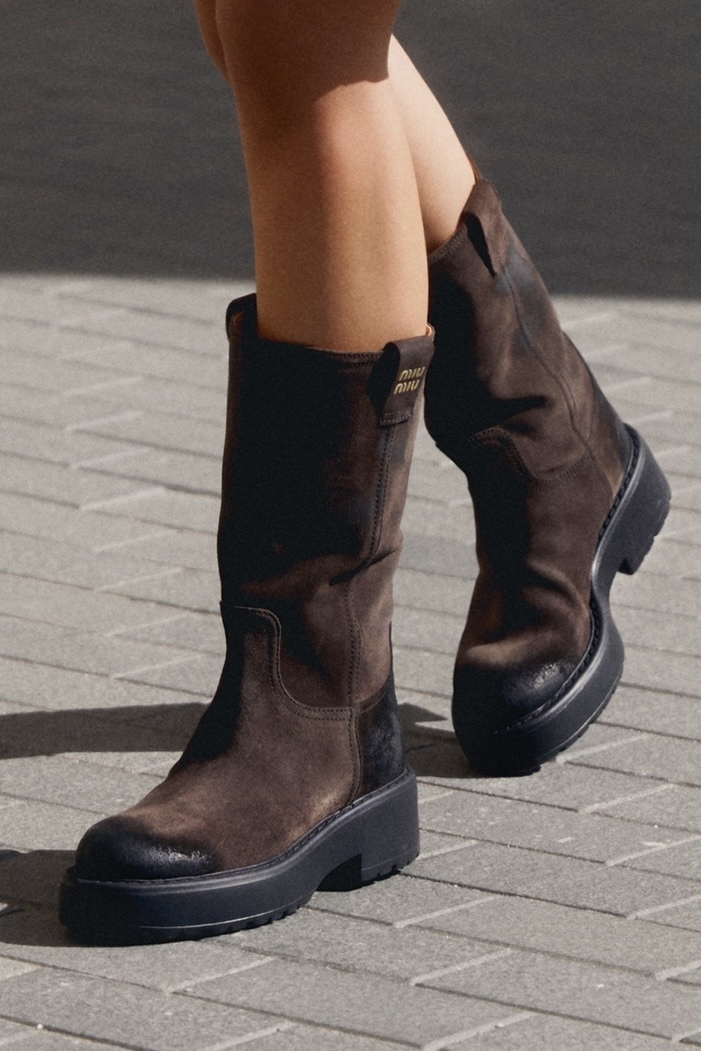 Сапоги Miu Miu Scamosciato — это воплощение элегантности и комфорта. Изготовленные из высококачественной телячьей кожи, они обеспечивают мягкость и долговечность. Кожаная подкладка и стелька добавляют удобства при носке, а резиновая подошва гарантирует надежное сцепление с поверхностью. Замшевая ткань придает обуви стильный вид, подчеркивающий вашу индивидуальность. Эти сапоги станут идеальным выбором для тех, кто ценит красоту и качество.