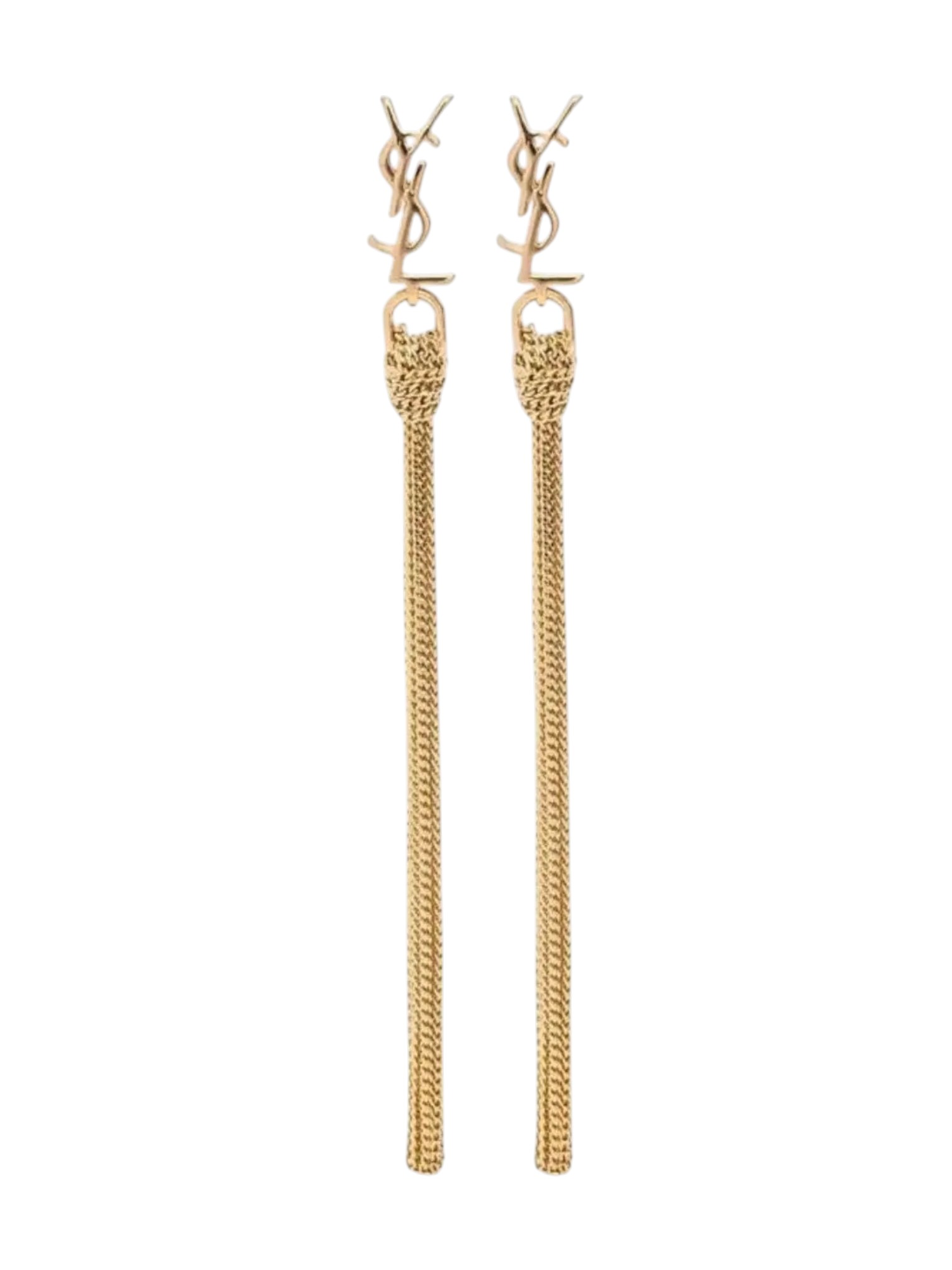 Серьги Saint Laurent - это аксессуар для тех, кто не боится быть в центре внимания. Крупная, узнаваемая монограмма YSL, отлитая из латуни с золотистым покрытием, приковывает взгляд. От неё, словно реки, стекают вниз несколько рядов тонких, изящных цепочек. При каждом повороте головы они мягко покачиваются, переливаясь и издавая едва слышный благородный звон. Эти серьги - манифест женской силы и стиля, созданный для смелых и уверенных.