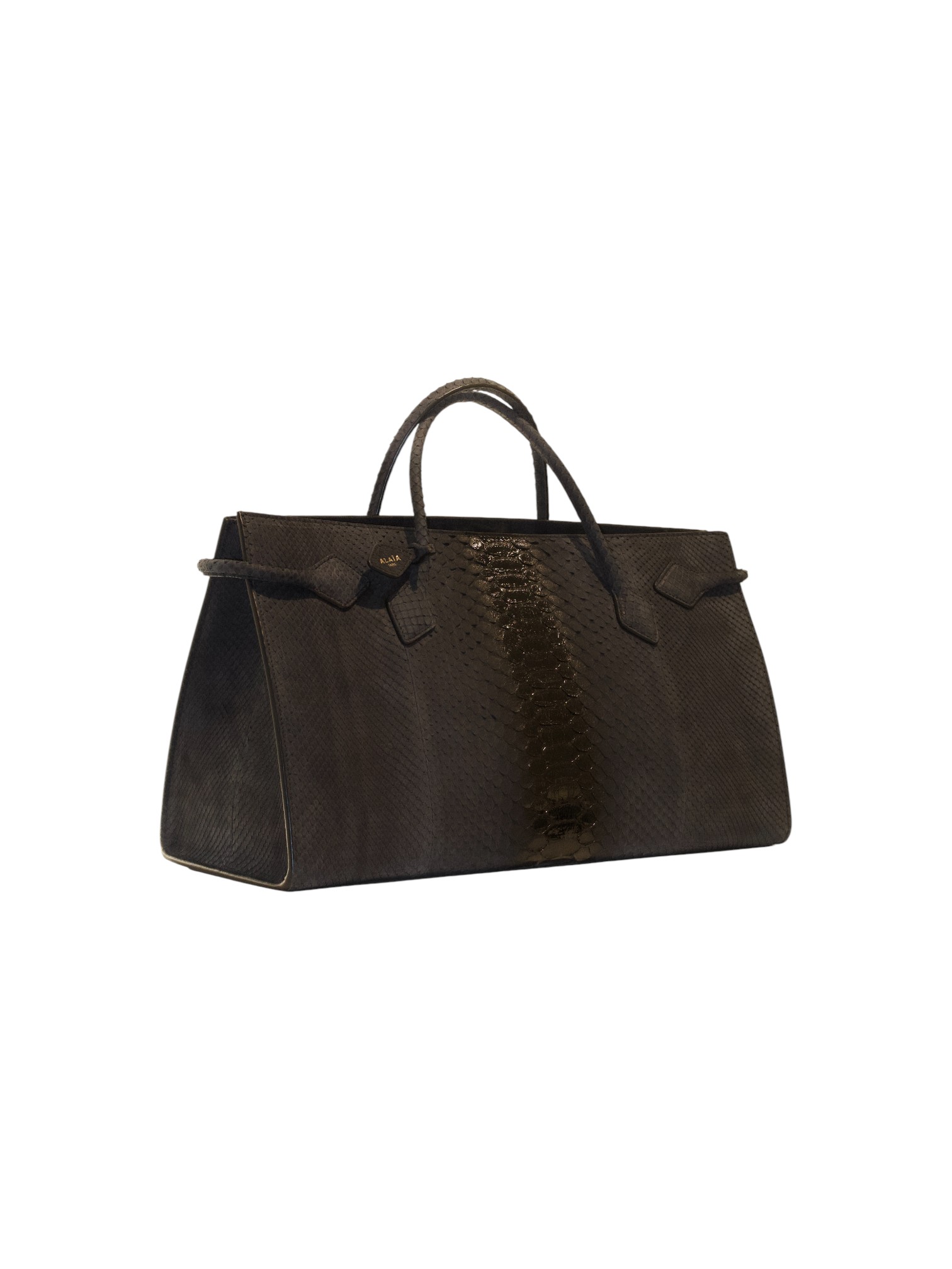 Сумка Alaïa - с чёткой архитектурной формой и акцентом на фактуру кожи. Модель выполнена в сдержанном тёмно-коричневом оттенке и выглядит статусно и минималистично - характерный стиль дома Alaïa. Центральная вертикальная вставка из кожи с выраженной чешуйчатой текстурой создаёт эффектный визуальный акцент и подчёркивает премиальность изделия. Жёсткая конструкция позволяет сумке хорошо держать форму. Короткие ручки удобны для ношения в руке или на сгибе локтя. Сумка подойдёт как для делового образа, так и для элегантных повседневных выходов.