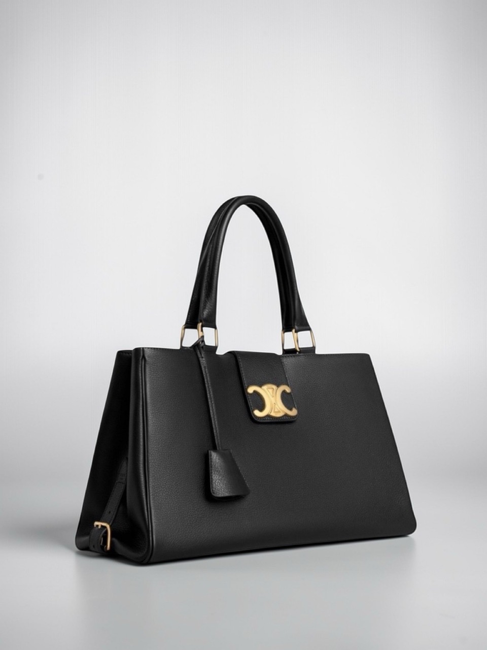 Сумка Celine - эталон парижской элегантности и безупречного мастерства. Этот культовый силуэт, выполненный в глубоком, насыщенном черном цвете из роскошной телячьей кожи, станет универсальным и статусным компаньоном на каждый день. Центральным элементом дизайна выступает фирменный золотистый замок - узнаваемый символ Дома CELINE, вдохновленный архивными мотивами. Его изящные линии и золотистое покрытие добавляют сумке мгновенно узнаваемый шик и роскошный акцент.