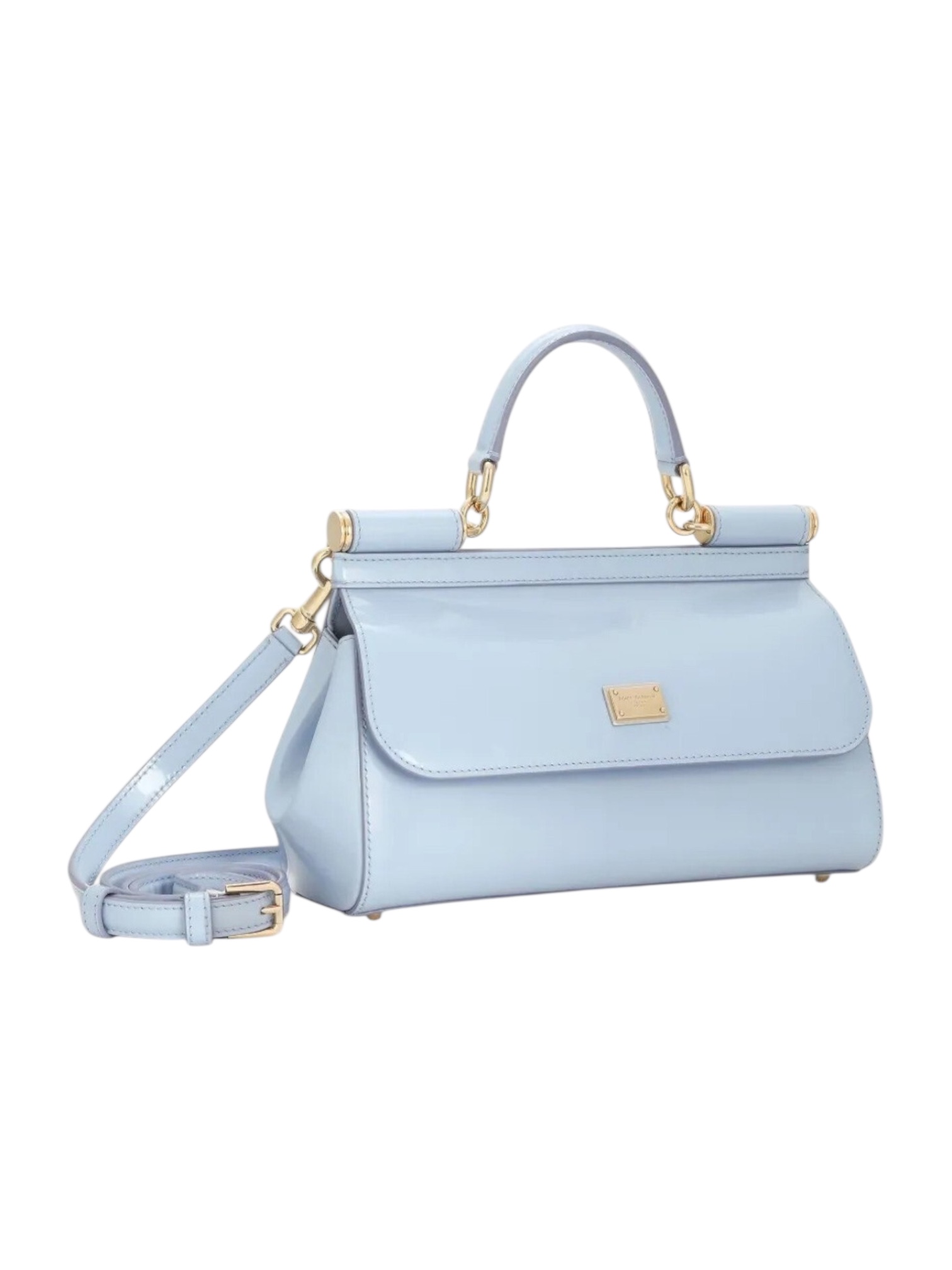 Сумка Dolce&Gabbana - это модель, выполненная в сочном небесно-голубом оттенке из глянцевой телячьей кожи, сочетает фирменную эстетику Дома с удивительной практичностью компактного формата. Изготовлена из роскошной глянцевой телячьей кожи высшего качества. Материал отличается насыщенным блеском, гладкостью и износостойкостью, придавая сумке мгновенно узнаваемый люксовый вид.