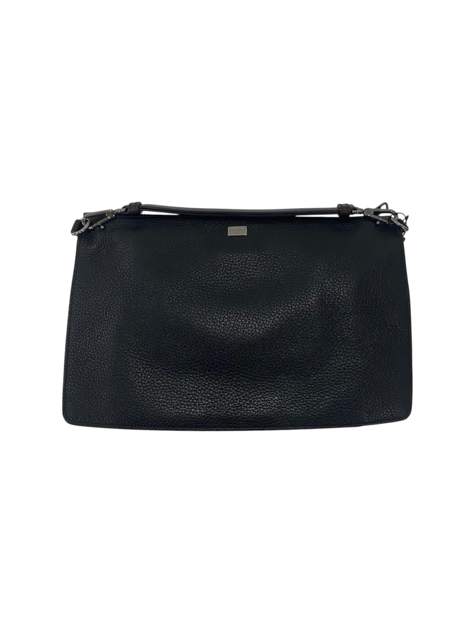 Сумка Dolce&Gabbana - в лаконичном дизайне из фактурной чёрной кожи. Модель отличается минималистичным силуэтом прямоугольной формы и украшена небольшой металлической пластиной с логотипом бренда. Сумка оснащена съёмным плечевым ремнём с карабинами, что позволяет носить её как на плече, так и в руках. Универсальный дизайн делает аксессуар идеальным как для повседневного образа, так и для вечернего выхода.