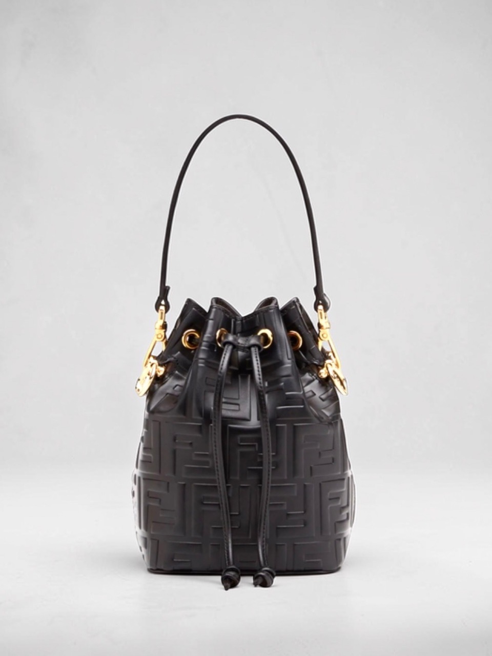Сумка Fendi – это сочетание стиля и элегантности. Изготовлена из высококачественной телячьей кожи, украшенной знаменитым логотипом бренда - FF. Замок на шнуровке придает изделию дополнительную защиту от посторонних вмешательств. Съемные ручки позволяют носить ее как обычную сумочку, а также крепить к плечу благодаря длинному съемному ремню. Металлические элементы золотого оттенка добавляют аксессуару роскошности. Подкладка выполнена из мягкой микрофибры, которая имитирует эффект замшевой ткани. Эта модель станет прекрасным дополнением вашего гардероба!