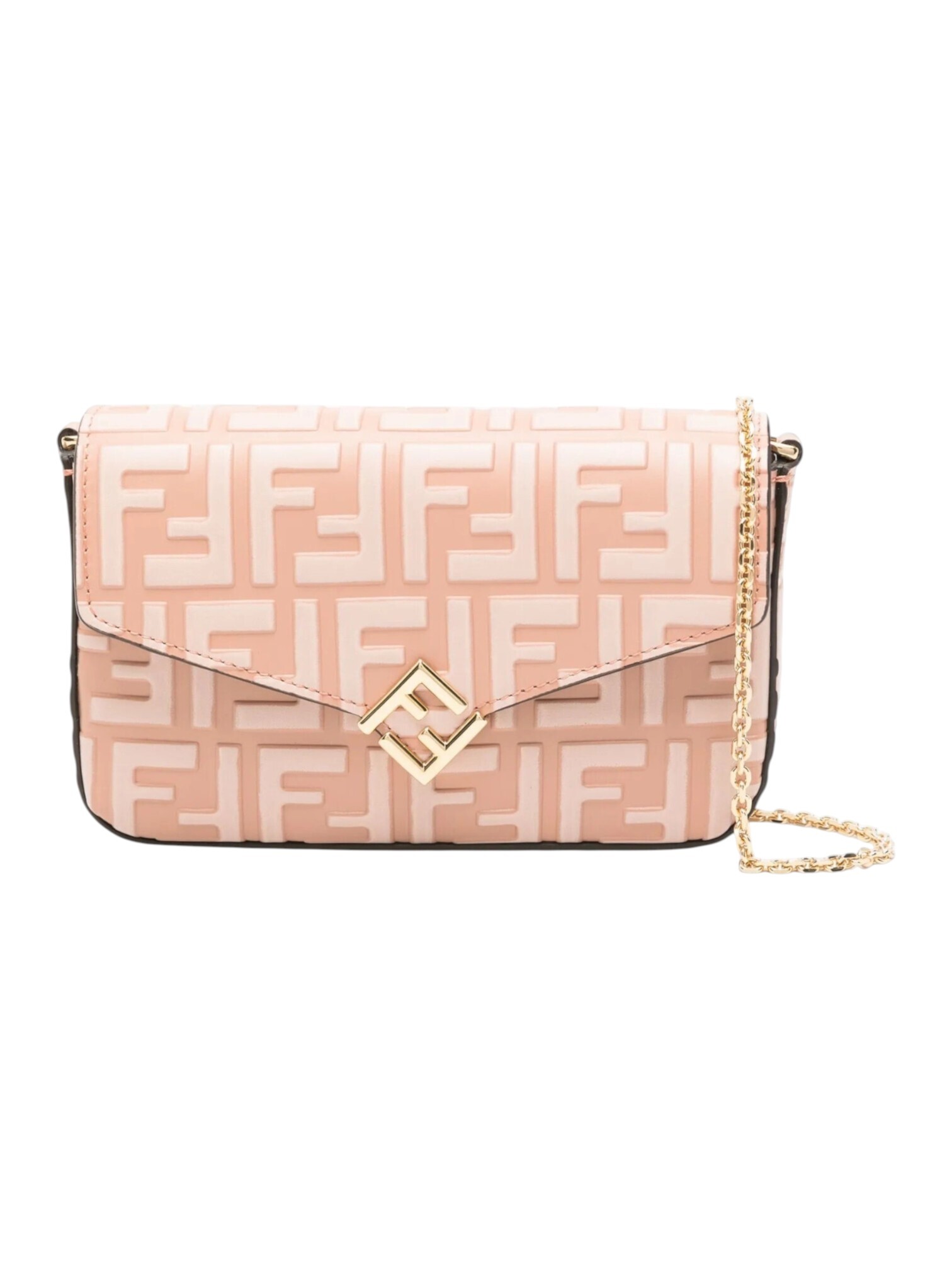 Сумка Fendi - выполненная в нежном лососево-розовом оттенке. Модель украшена культовым узором, который стал символом современной роскоши и наследия бренда. Верх сумки с отворотом и застежкой на кнопку обеспечивает безопасность и легкий доступ к содержимому. Съемный цепочный плечевой ремень позволяет носить сумку как на плече, так и в руках, адаптируя ее под различные ситуации. Внутренние слоты для карт добавляют практичности, сохраняя элегантность дизайна. Идеально для: вечерних мероприятий, особых случаев и повседневной элегантности, где важны стиль, качество и узнаваемый дизайн Fendi.