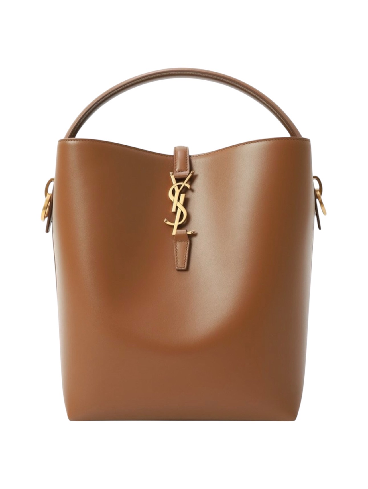 Сумка Saint Laurent - Элегантная коричневая сумка, выполненная из натуральной кожи. Благодаря широкому основанию и формоустойчивой конструкции, она идеально держит форму. Носите ее за короткую ручку или используйте съемный регулируемый ремень для удобства. Узкий клапан украшен узнаваемой монограммой YSL. Внутри вы найдете миниатюрную косметичку в тон, закрывающуюся на молнию.