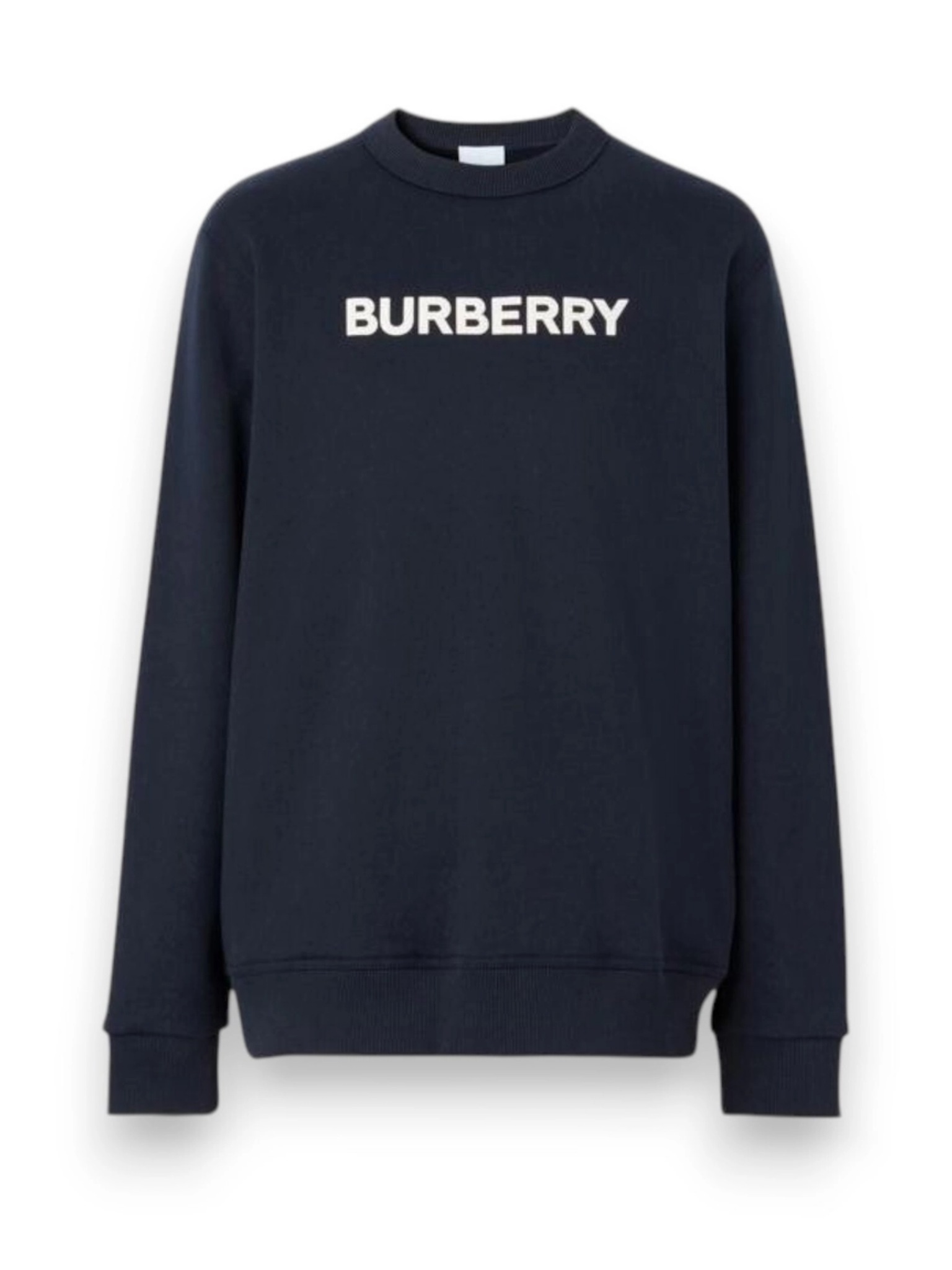 Свитшот Burberry - это больше, чем просто свитшот. Это символ принадлежности к наследию британского стиля. Глубокий синий цвет, уверенная надпись "BURBERRY" на груди и безупречный крой свободного силуэта - формула вашей повседневной элегантности от иконы моды. Каждый взгляд на логотип - напоминание о тренчах, красных ковровых дорожках и безупречном вкусе.
