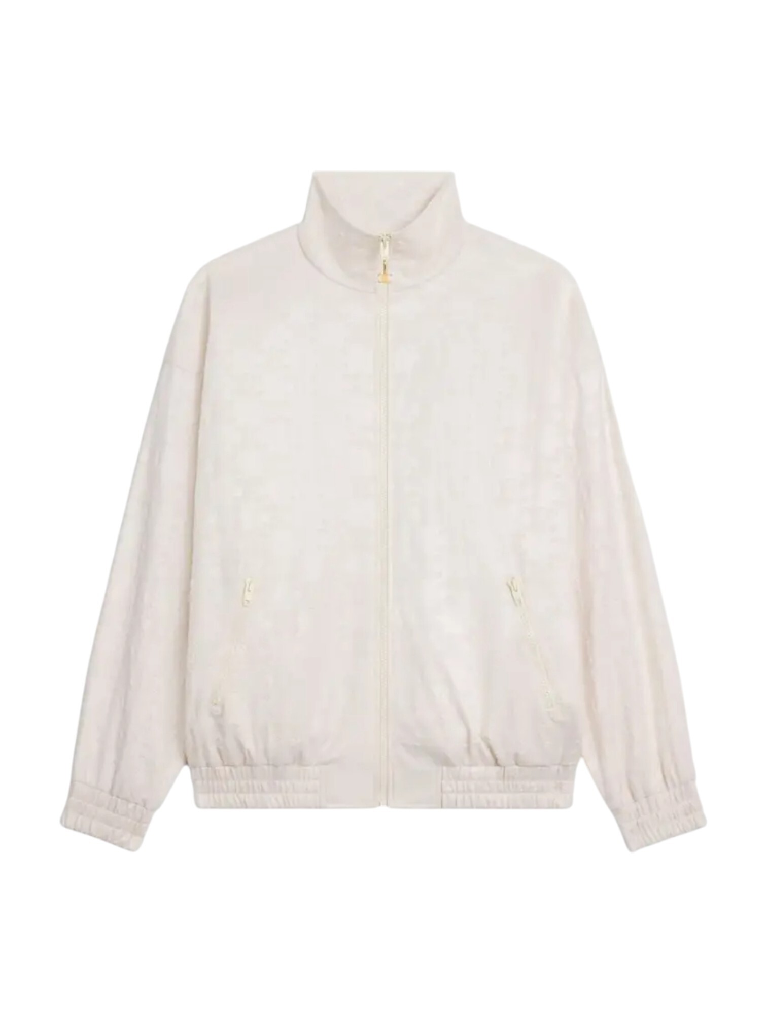 Толстовка Celine - выполненная в нежном молочном оттенке. Тисненый логотип, нанесенный по всей поверхности, создает сложную текстуру и сдержанный, но узнаваемый принт. Это демонстрация стиля без лишней крикливости, в духе современной эстетики. Высокий воротник обеспечивает дополнительное тепло и завершенность образа, а два удобных боковых кармана добавляют практичности. Застежка-молния позволяет варьировать степень открытости. Эта толстовка - инвестиция в гардероб, где каждая деталь говорит о безупречном вкусе.