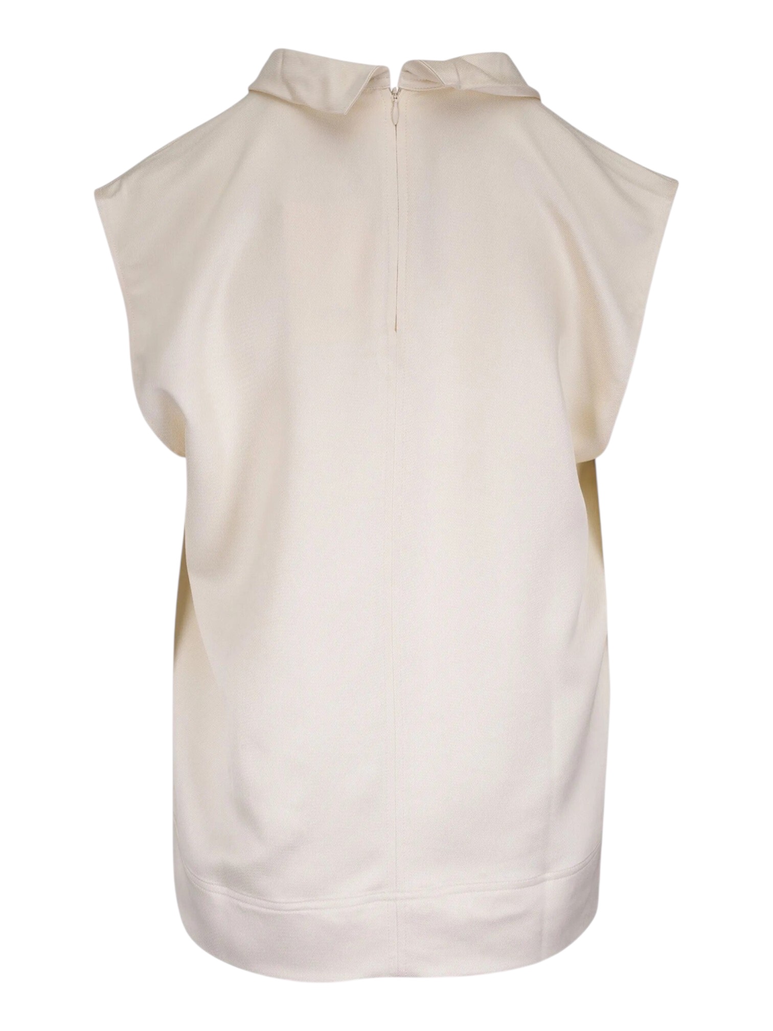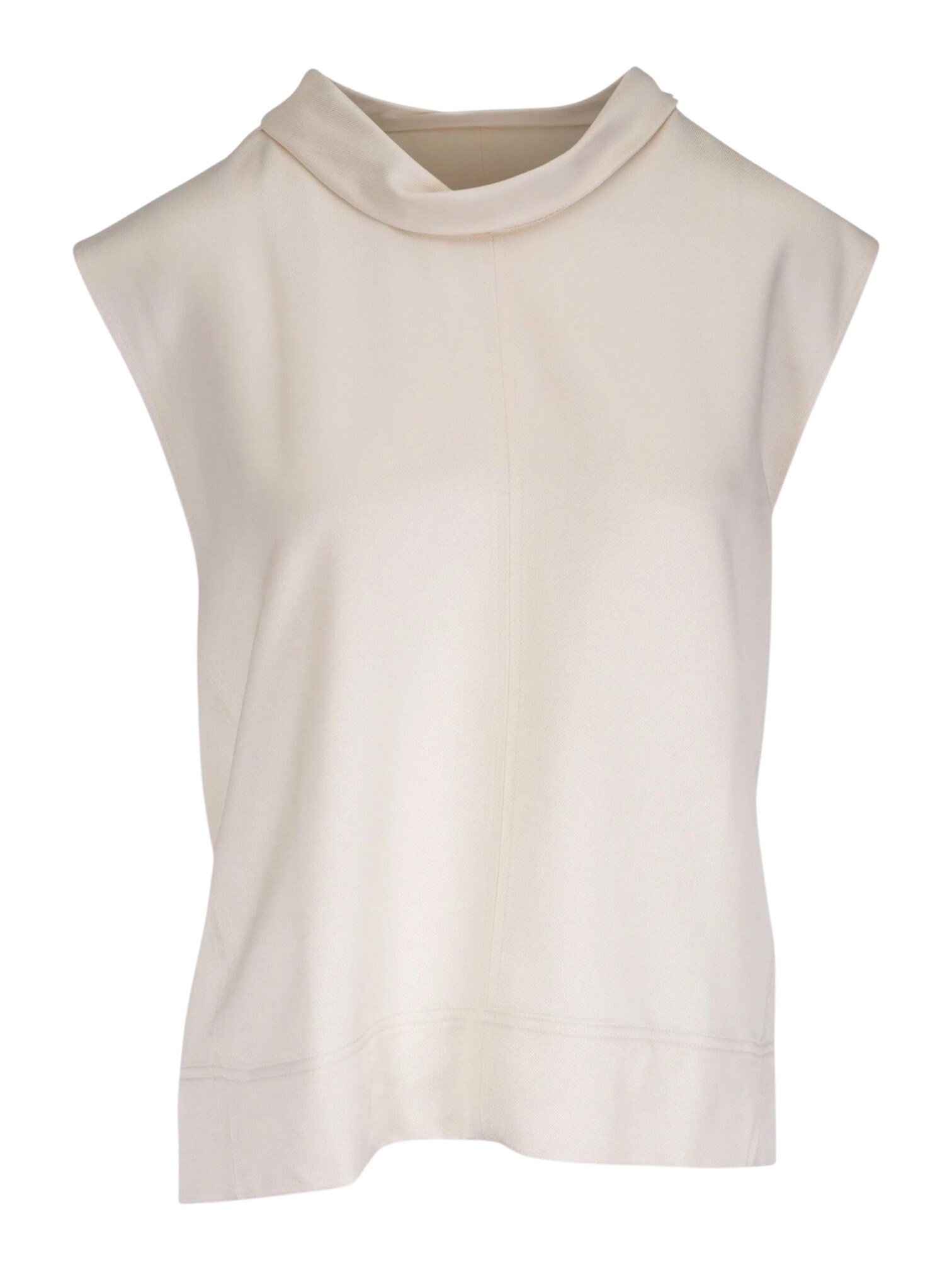 Топ Totême - выполненный в нежном оттенке экрю из 100% вискозы. Модель отличается лаконичным дизайном с круглым вырезом и отсутствием рукавов, что делает её универсальным элементом гардероба. Скрытая застежка-молния сзади обеспечивает удобство надевания и чистоту линий. Мягкая вискозная ткань придает изделию легкость и комфорт, идеально подчеркивая минималистичную эстетику бренда. Идеально для: офиса, городских прогулок и вечерних мероприятий, где важны сдержанность, комфорт и скандинавская эстетика.