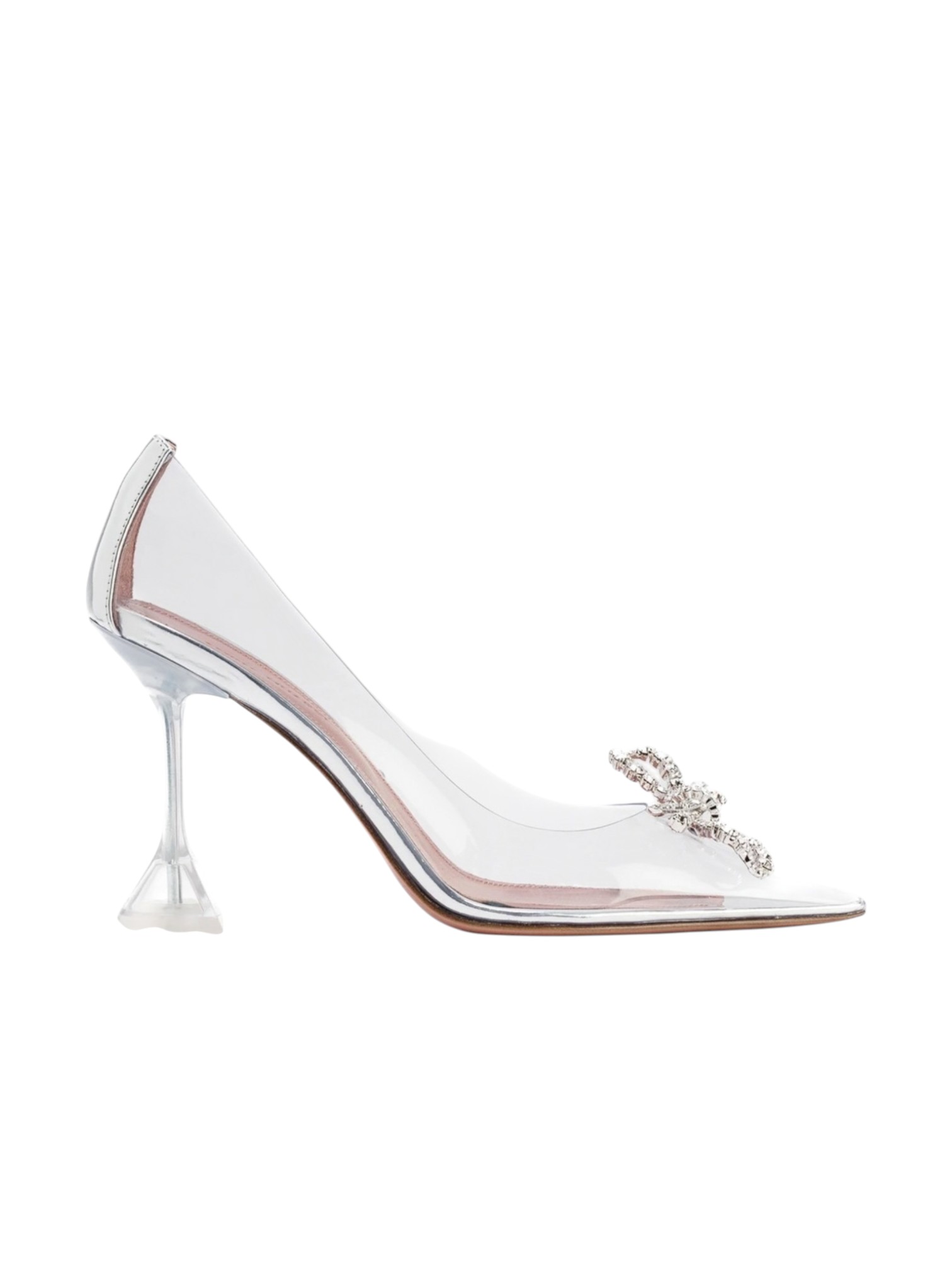 Туфли Amina Muaddi - украшены фирменным бантом от дизайнера Амины Муадди. Узнаваемый заостренный носок и рифленый каблук формируют культовый, удлиненный силуэт, ставший визитной карточкой бренда. Бант, усыпанный кристаллами, контрастирует с глянцевой поверхностью ПВХ, создавая эффектную игру текстур и делая пару центральным элементом любого образа. Это выбор для тех, кто не боится быть в центре внимания и ценит смелые дизайнерские решения.