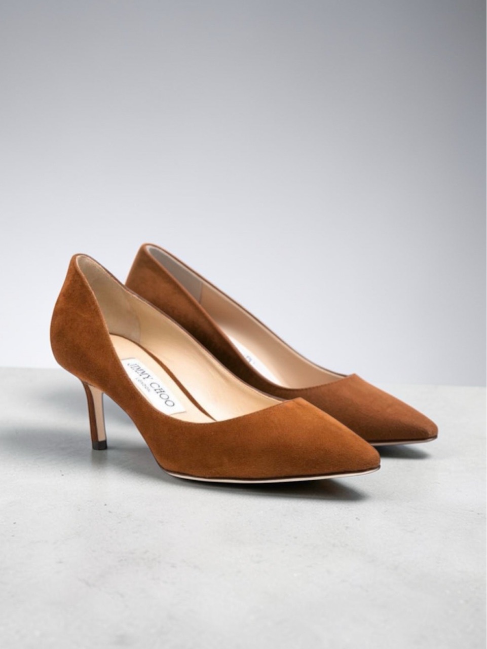 Туфли Jimmy Choo - выполненные из мягкой замши насыщенного карамельно-терракотового оттенка. Элегантный заострённый носок и аккуратный каблук средней высоты создают утончённый силуэт, идеально подходящий как для деловых образов, так и для вечерних выходов. Внутренняя отделка выполнена из гладкой натуральной кожи бежевого цвета, что обеспечивает дополнительный комфорт при носке. Модель подчеркивает фирменный утончённый стиль бренда и подойдёт для женщин, ценящих элегантность и универсальность.