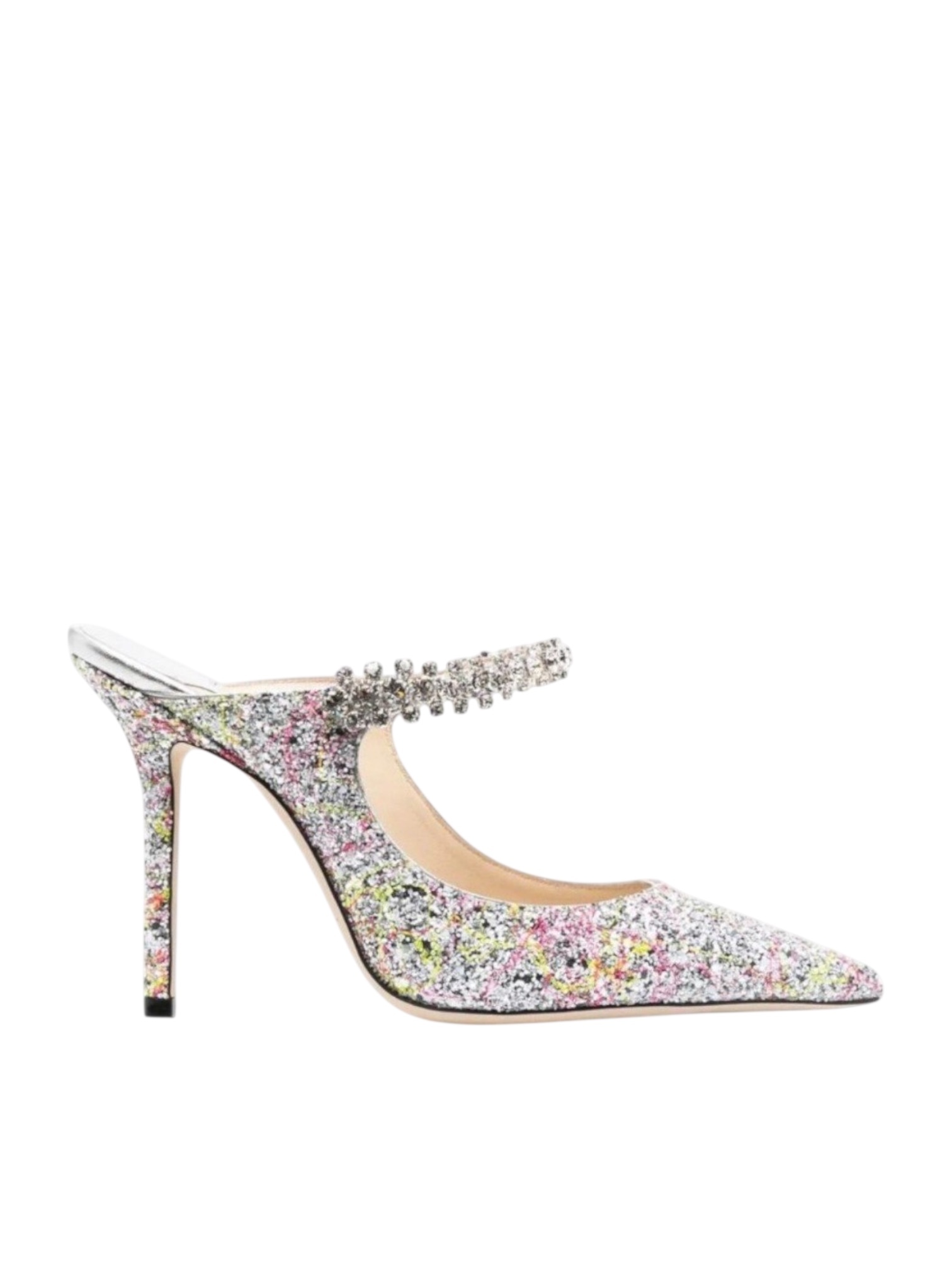 Туфли Jimmy Choo - сияющий шик в серебре. Эта пара сочетает фирменную элегантность с ослепительным акцентом. Роскошная декоративная лямка, усыпанная многоцветными кристаллами, приковывает взгляды и делает эту модель невероятно особенной. Заостренный носок создает утонченный силуэт. Верх выполнен в переливающемся серебристом тоне с многоцветной блестящей отделкой, создающей игру света при каждом движении. Это выбор для тех, кто хочет добавить образу незабываемого сияния и дерзкой элегантности.