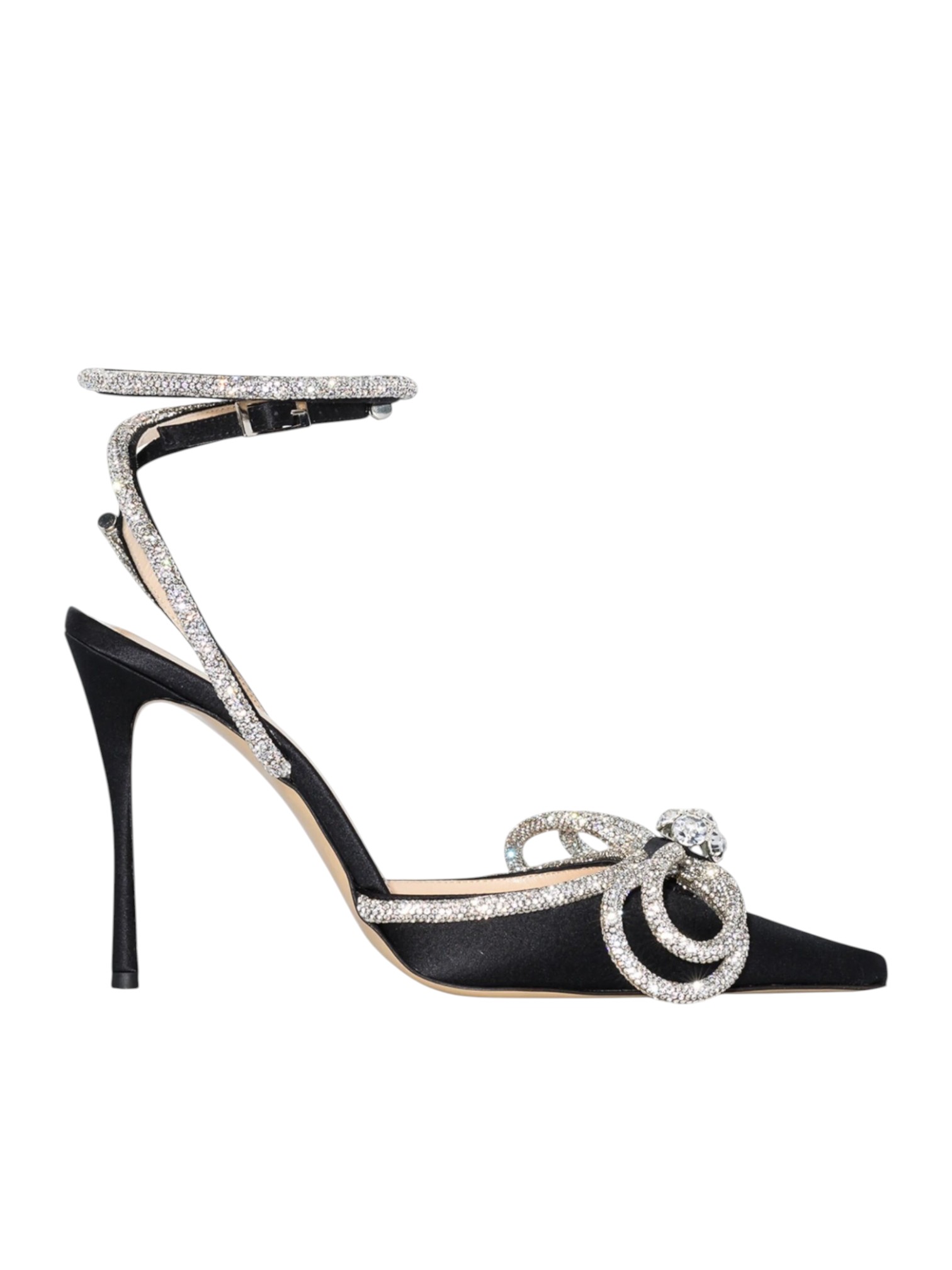 Туфли Mach & Mach - с острым носом и акцентом на мыске. Двойной бант и ремешок на щиколотке с закрученной пряжкой усыпаны кристаллами. Шпилька с резиновыми вставками и графическая фурнитура на подошве подчеркивают уникальность. Логотип на стельке. Идеальное сочетание дерзости и гламура. Это не просто туфли - это смелое дизайнерское высказывание. Безупречный баланс элегантности, комфорта и технологичного дизайна.