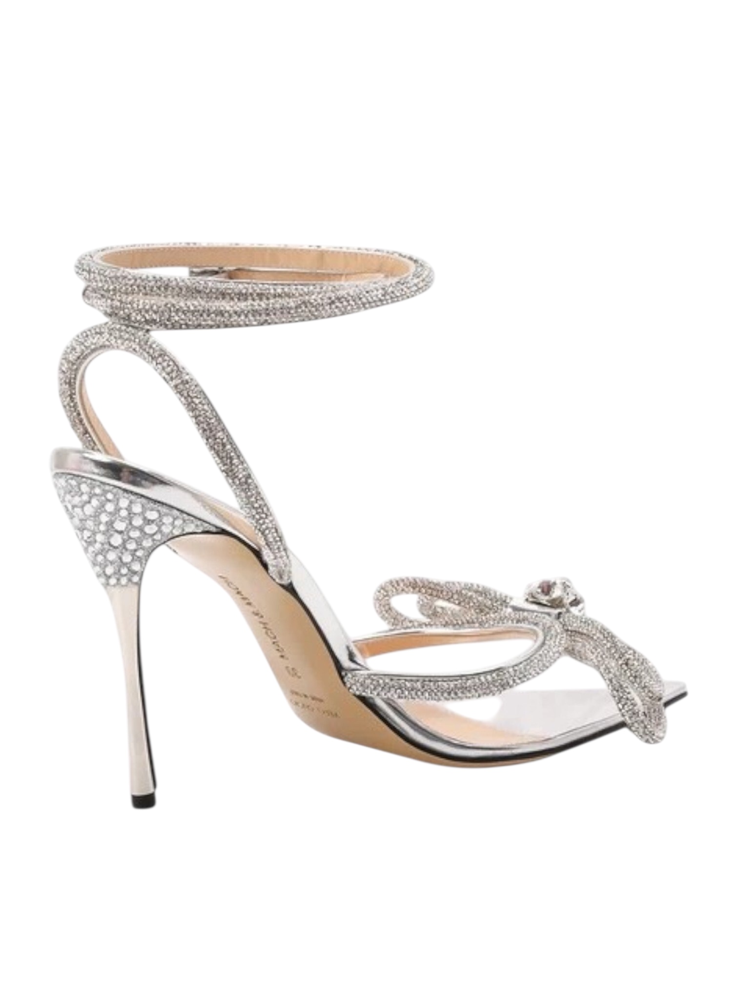 Туфли Mach & Mach - с острым носом и акцентом на мыске. Двойной бант и ремешок на щиколотке с закрученной пряжкой усыпаны кристаллами. Шпилька с резиновыми вставками и графическая фурнитура на подошве подчеркивают уникальность. Логотип на стельке. Идеальное сочетание дерзости и гламура. Это не просто туфли - это смелое дизайнерское высказывание.