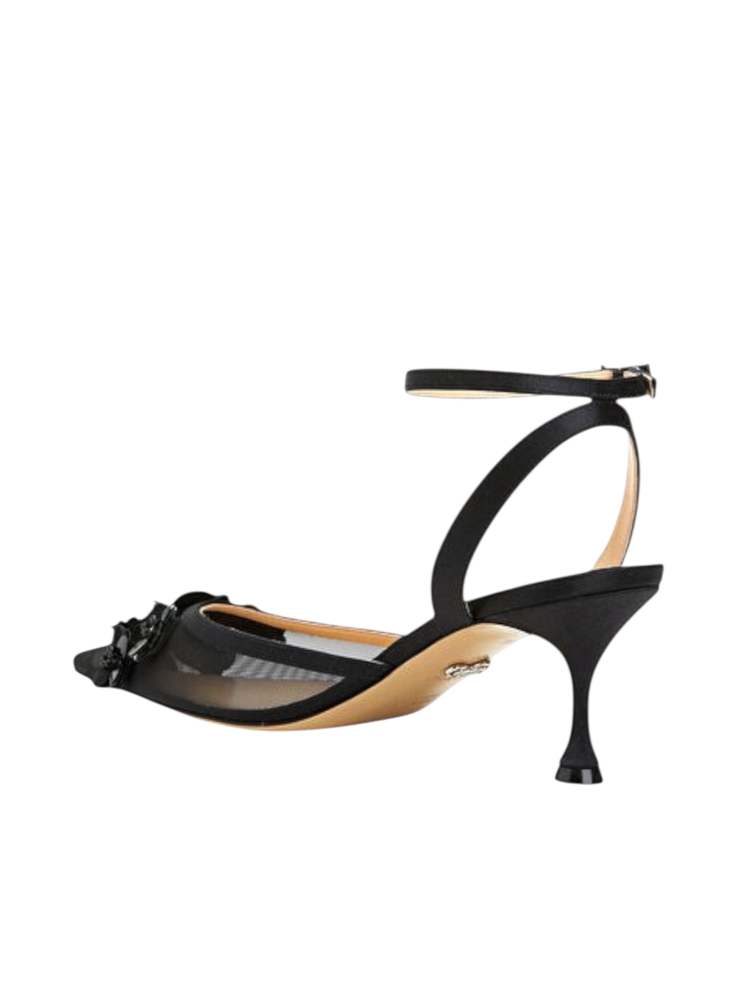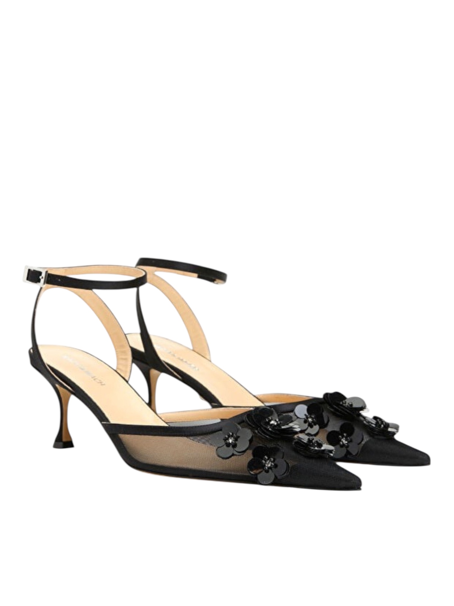 Туфли Mach & Mach - произведение искусства. Заостренный носок подчеркивает изящество стопы и визуально удлиняет линию ноги, создавая утонченный и женственный образ. Высота каблука 6.5 см обеспечивает уверенную стабильность и комфорт для вечера, сохраняя при этом элегантную осанку. Объемная 3D-цветочная аппликация, богато украшенная сверкающими камнями, является сердцем этой модели. Каждый цветок - уникальный элемент, создающий эффект роскошного сада на вашей ноге. Эти туфли - не просто обувь, это инвестиция в уникальный стиль, смелое заявление и шедевр обувного дизайна для истинных ценителей высокой моды.