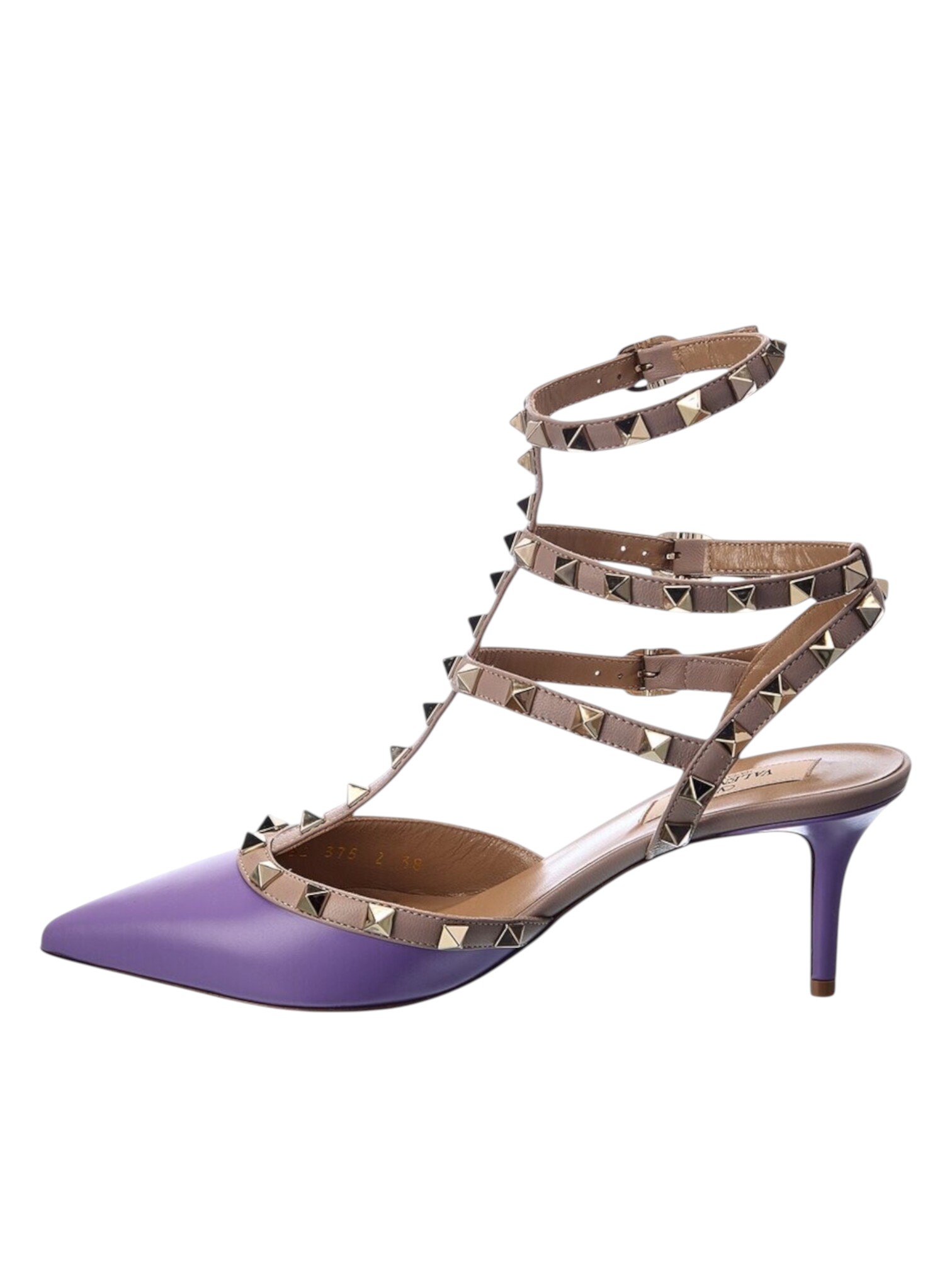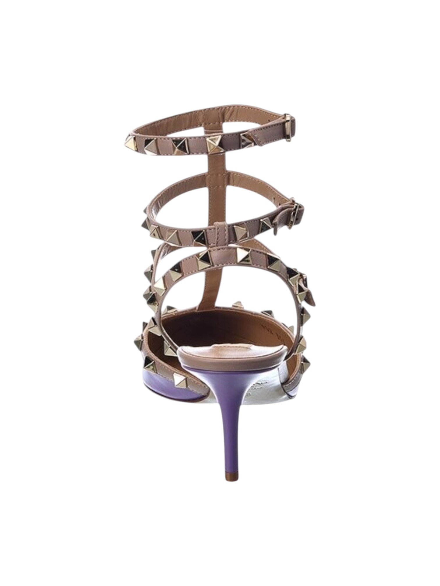 Туфли Valentino Garavani - знаковые лакированные лодочки с каблуком 65 мм. Узнаваемый контраст: глянцевый сиреневый лак и фирменная отделка матовыми металлическими шипами Rockstud по контуру. Эта деталь - мгновенно узнаваемый символ Дома, добавляющий образу дерзкой элегантности и роскоши. Нестареющая элегантность, дерзкий шик и комфортная высота.