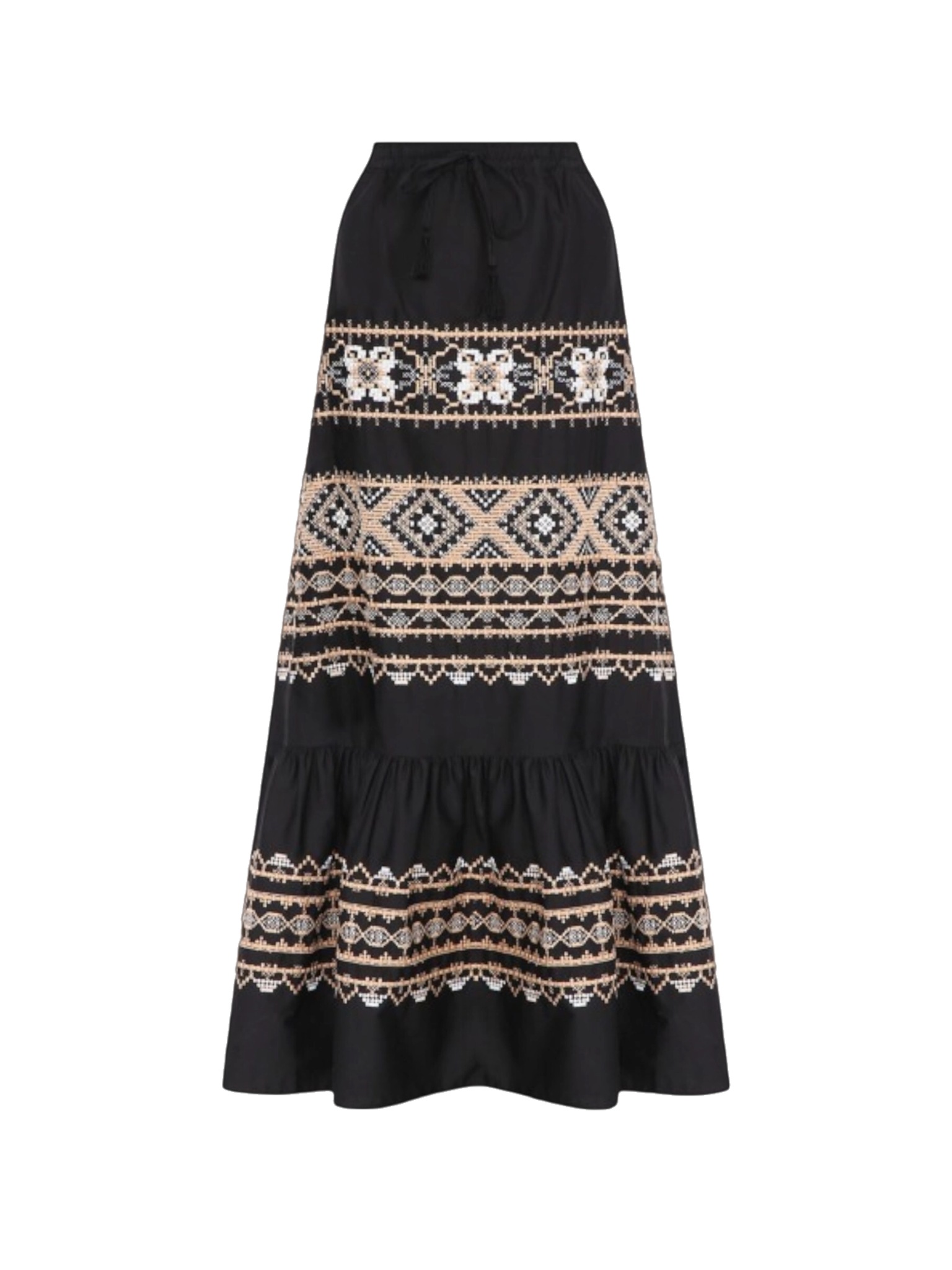 Юбка Ermanno Firenze - не просто предмет гардероба, а история, рассказанная через вышивку, которая добавит вашему образу индивидуальности и тепла ручной работы. Геометрические и цветочные узоры – сложная вышивка вручную придает юбке художественную ценность и этнический колорит. Эластичный пояс со шнурком – регулируемая посадка для идеального облегания талии без дискомфорта. Свободный расклешенный крой – мягкие складки красиво колышутся при движении, подчеркивая женственность силуэта. Универсальный черный цвет – служит идеальным фоном для выразительной вышивки, сочетаясь с любыми оттенками в гардеробе.