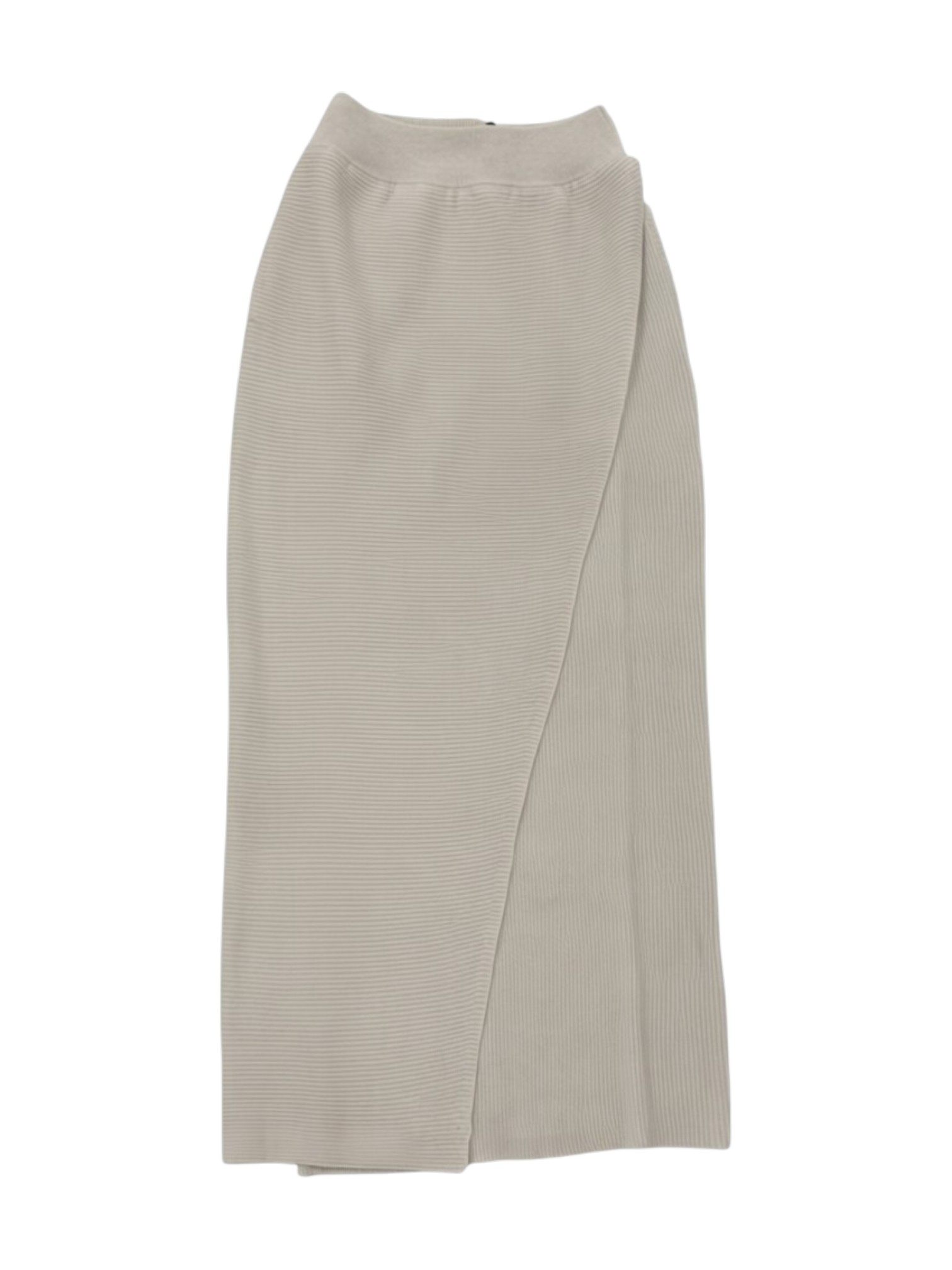 Юбка Lorena Antoniazzi - в спокойном бежево-сером оттенке. Модель выполнена из мягкого, фактурного материала с тонким рубчиком по всей длине. Асимметричная верхняя панель создаёт эффект лёгкого запаха и визуально удлиняет силуэт. Пояс на резинке обеспечивает комфортную посадку, а прямой крой делает изделие универсальным для повседневных и более утончённых образов. Идеально сочетается с базовыми топами, мягкими свитерами и лаконичной обувью.