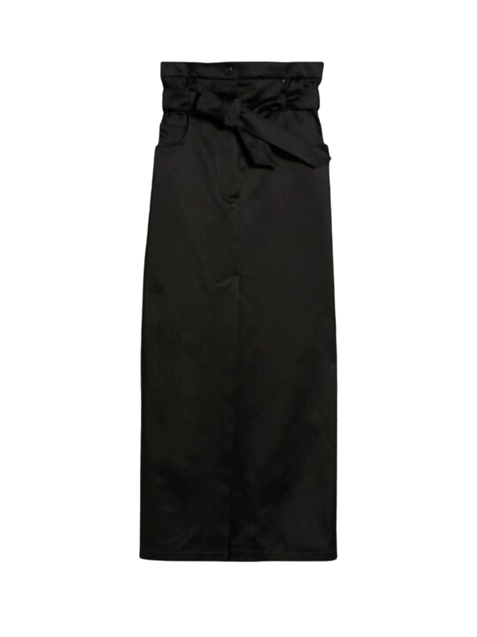 Юбка Max Mara - изготовлена из гладкой, слегка блестящей ткани. Юбка имеет высокую посадку и длину миди. Акцентная деталь – пояс-кулиска, формирующий мягкие складки на талии и завязывающийся в элегантный узел.  В нижней части юбки расположен разрез, придающий свободу движений.  Классический силуэт юбки делает ее универсальным элементом гардероба, подходящим как для офисных, так и для вечерних образов.