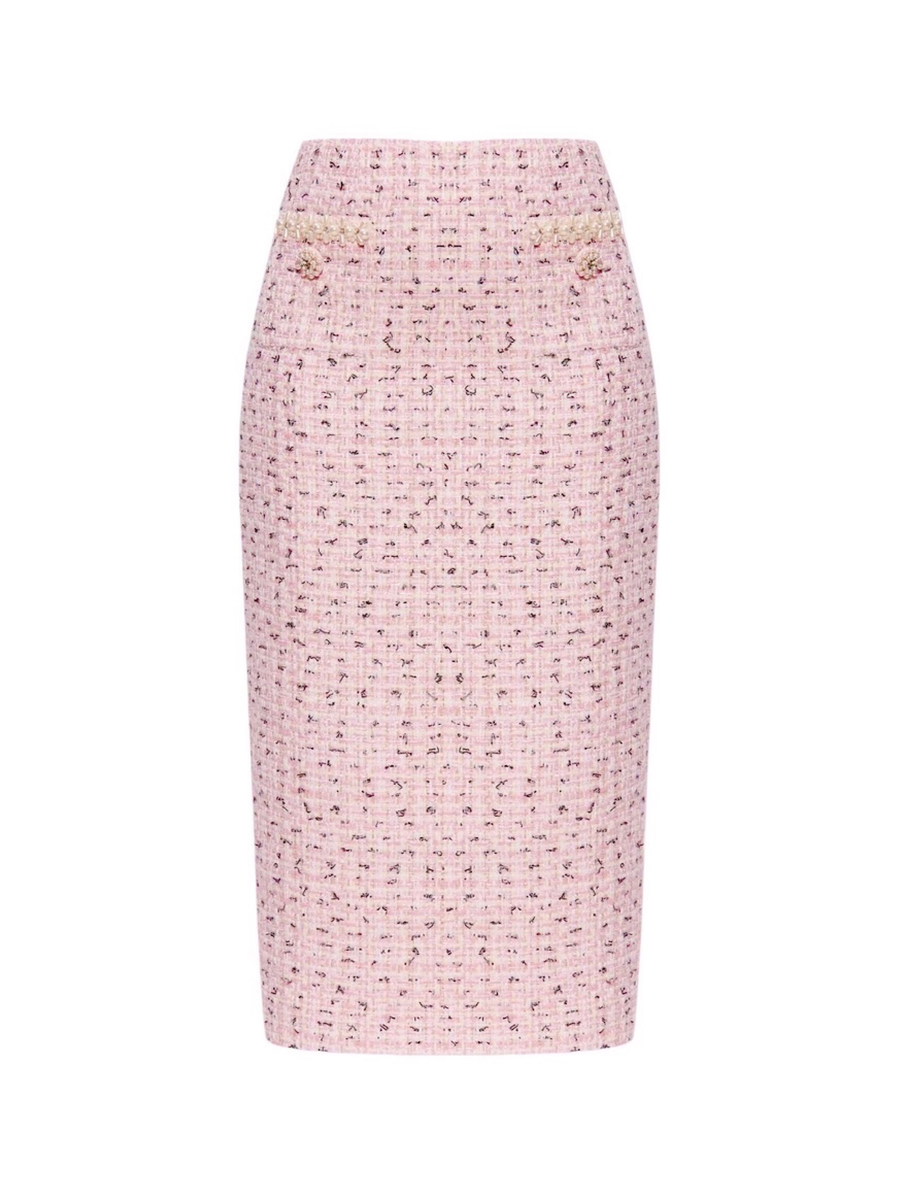 Юбка Self-Portrait - выполненная из утонченного твида, воплощает собой парижский шик и современный крой. Модель средней длины сзади дополнена стильным разрезом, который подчеркивает динамику силуэта при ходьбе. Неожиданная и изящная деталь - пудрово-розовая молния сзади, которая добавляет нотку нежности. Идеальная юбка для создания утонченного образа изысканной женщины.