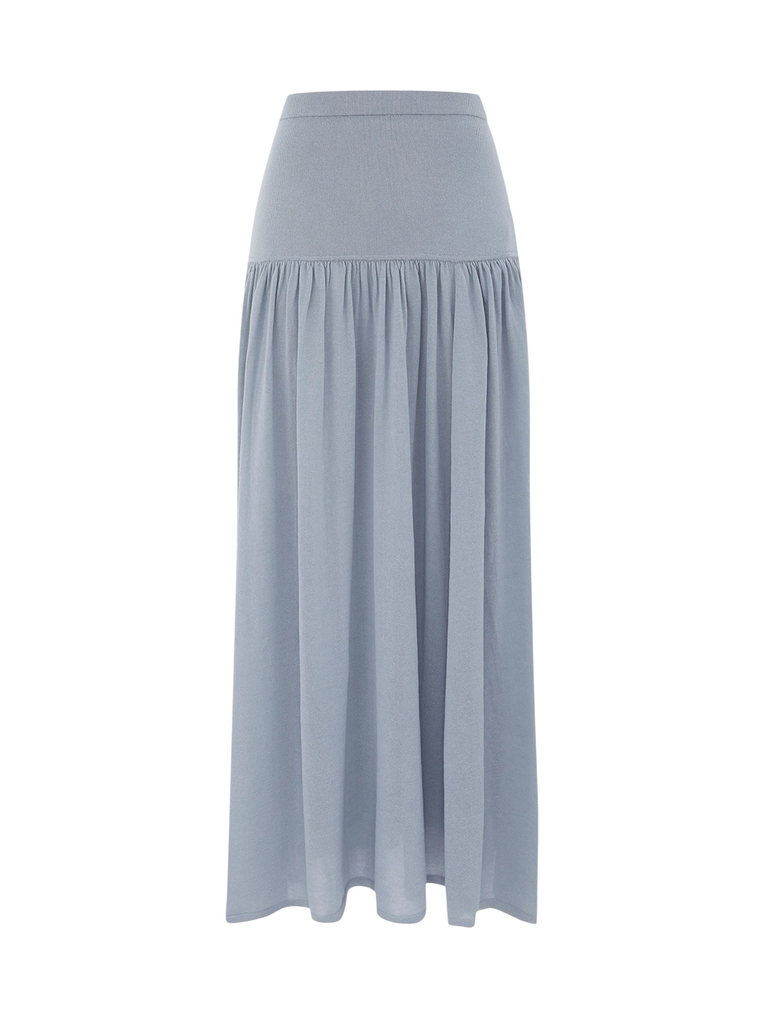 Юбка Zimmermann - словно олицетворение облака: нежный пыльно-голубой оттенок, струящийся трикотаж и волшебные объемные сборки на бедрах, которые играют с каждым вашим шагом. Широкий пояс мягко обнимает талию, а силуэт трапеции дарит свободу и непринужденность. Наденьте ее с простым топом и босоножками, чтобы позволить этой красоте стать центром внимания. Это не просто юбка, а готовое летнее настроение.