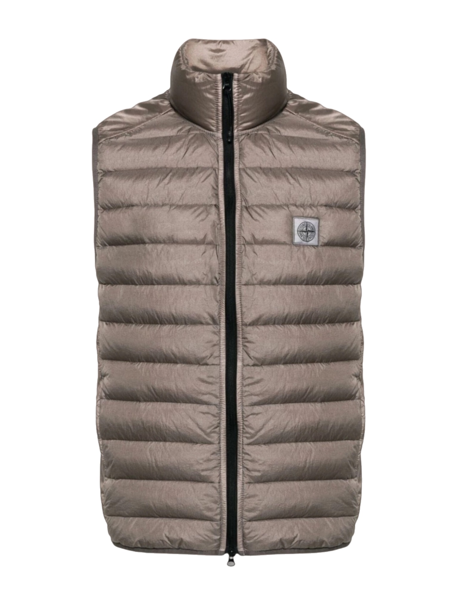 Жилет Stone Island - технологичный комфорт в земляных тонах. Модель на пуховом наполнителе с фирменным логотипом-аппликацией в виде компаса создает образ, в котором функциональность встречается с безупречным стилем. Stone Island – это символ инноваций и качества. Этот жилет станет надежным спутником в холодные дни, подчеркивая ваш стиль и любовь к функциональному дизайну.