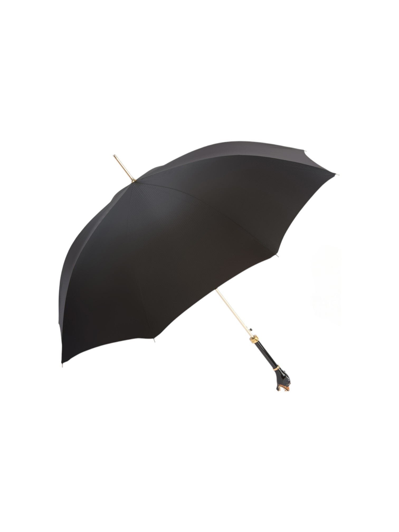 Зонт Pasotti - идеальное сочетание вневременной элегантности и игривой индивидуальности. Этот зонт от итальянского дома Pasotti воплощает в себе две страсти - к безупречной классике и к неординарным дизайнерским решениям. Глубокий черный цвет купола говорит о сдержанности и стиле, в то время как дизайнерская ручка в форме собаки раскрывает характер владельца - верного, яркого и преданного своему вкусу. Каждая линия фигурки собаки тщательно проработана, создавая тактильное удовольствие и превращая обычный аксессуар в предмет искусства. Несмотря на творческий подход, зонт не уступает в практичности: просторный купол диаметром 110 см из высококачественного полиэстера надежно защитит от непогоды.