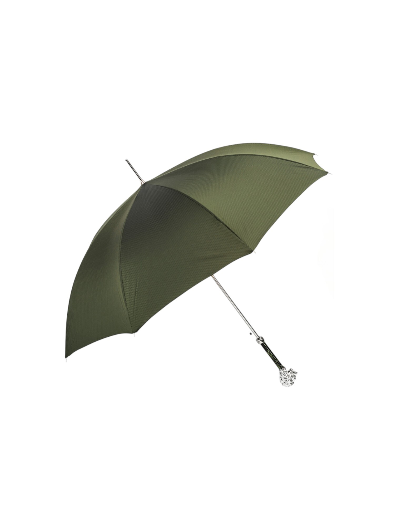 Зонт Pasotti - не просто защищает от непогоды, но и становится ярким заявлением о вашем статусе и безупречном вкусе. Глубокий зелёный цвет купола, напоминающий сочную тропическую листву, символизирует жизненную энергию и роскошь, а дизайнерская ручка в форме головы льва подчёркивает силу, благородство и властный характер своего обладателя. Просторный купол диаметром 110 см, изготовленный из 100% полиэстера, обеспечивает надёжную защиту от дождя и ветра. Идеальный спутник для тех, кто сочетает в себе мощь, элегантность и любовь к эксклюзивным деталям.