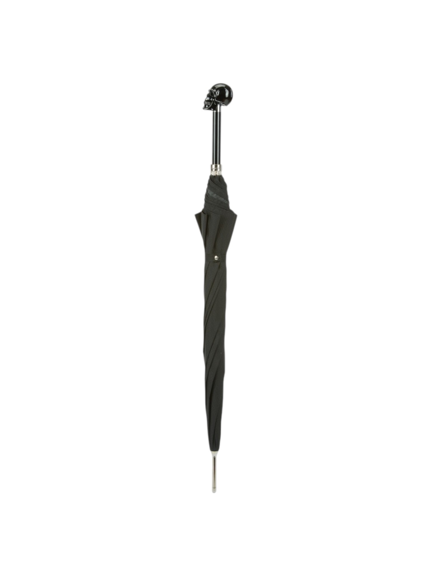Зонт Pasotti - воплощает в себе дух бунтарства и утонченной роскоши. Глубокий черный цвет купола символизирует таинственность и элегантность, а дизайнерская ручка в виде черепа добавляет образу дерзости и индивидуальности. Каждая деталь черепа тщательно проработана, создавая тактильное удовольствие и превращая аксессуар в настоящий арт-объект. Несмотря на брутальный дизайн, зонт остается практичным: просторный купол диаметром 110 см из высококачественного 100% полиэстера надежно защищает от непогоды. Идеальный выбор для смелых и уверенных в себе, кто ценит эксклюзивные детали и не боится выделяться.