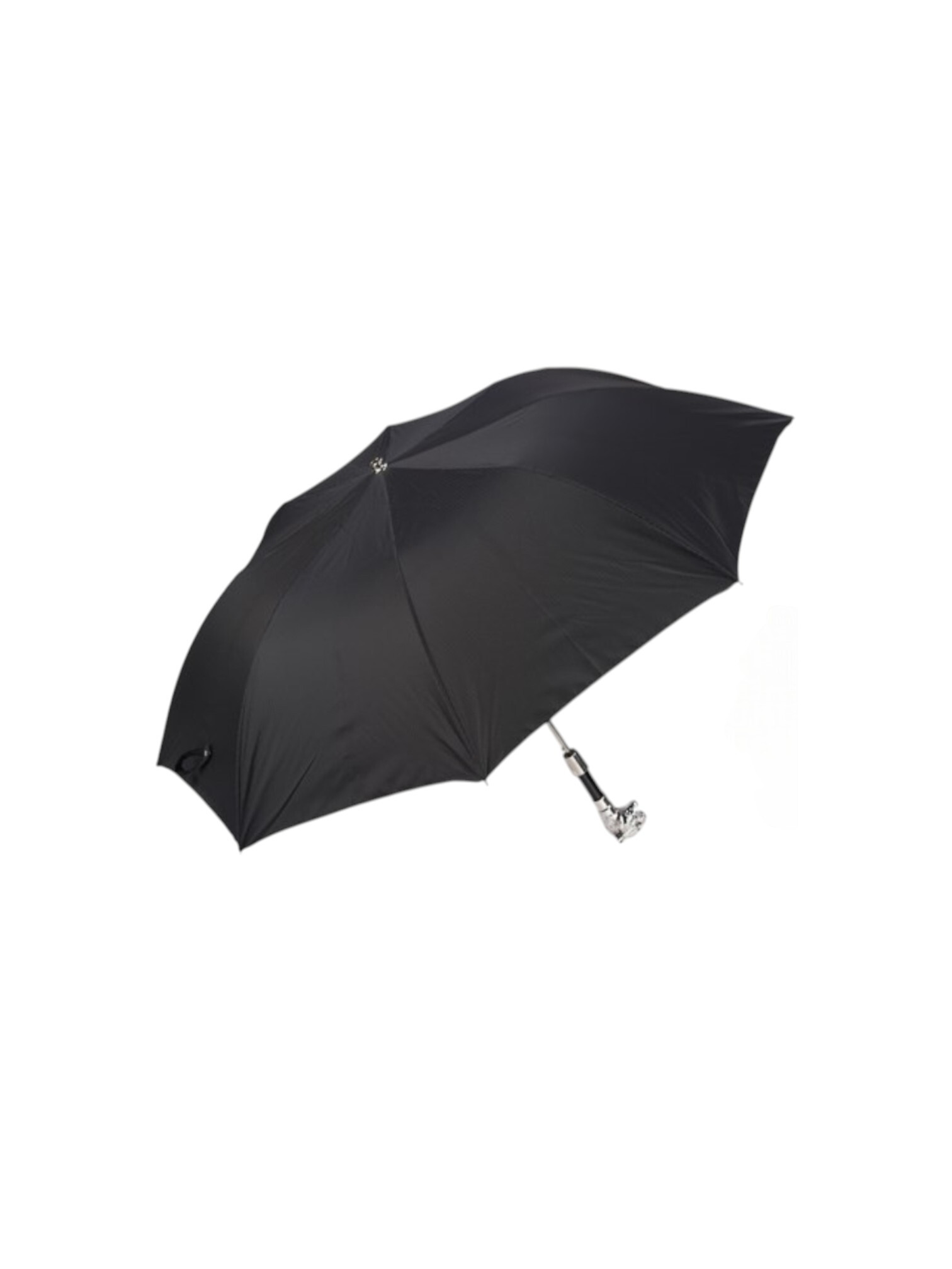 Зонт Pasotti - для тех, кто не боится проявлять свою сильную натуру и уверенно идет по жизни с королевской грацией. Глубокий черный цвет купола, словно бархатная ночь, создает ауру таинственности и непревзойденного стиля. Дизайнерская ручка в форме грациозной пантеры - символа власти, изящества и силы - подчеркивает безупречный вкус и харизму своего владельца. Искусно проработанная фигура пантеры с плавными изгибами и выразительными чертами превращает ручку в настоящий скульптурный шедевр. Каждая деталь воплощает мощь и грацию этого величественного животного. Практичность сочетается с магией: просторный купол диаметром 110 см из 100% полиэстера надежно защищает от непогоды.